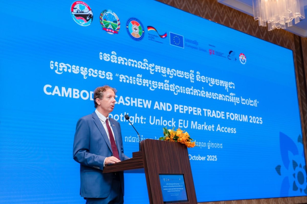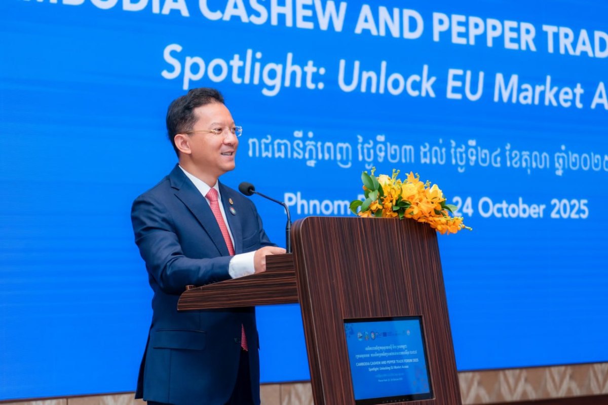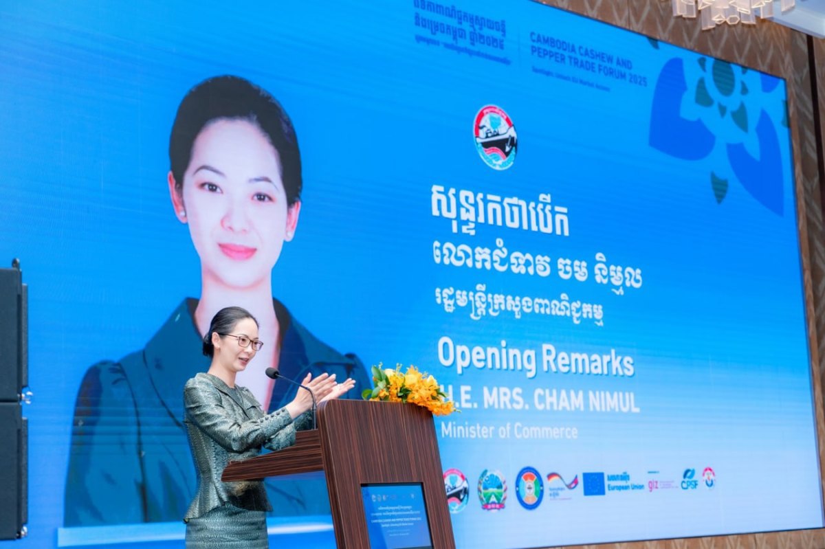 ភ្នំពេញ៖ នាថ្ងៃព្រហស្បត៌ ទី២៣ ខែតុលា ឆ្នាំ២០២៥ លោកជំទាវ ចម និម្មល រដ្ឋមន្ត្រីក្រសួងពាណិជ្ជកម្ម បានអញ្ជើញជាអធិបតីក្នុងពិធីបើក “វេទិកាពាណិជ្ជកម្មស្វាយចន្ទី និងម្រេចកម្ពុជា” ក្រោមមូលបទ “ការបើកច្រកទីផ្សារទៅកាន់សហភាពអឺរ៉ុប ២០២៥” ដែលប្រព្រឹត្តិទៅចាប់ពីថ្ងៃទី២៣-២៤ ខែតុលា ឆ្នាំ២០២៥ នៅសណ្ឋាគារ ហៃយ៉ាត់ រីជិនស៊ី ភ្នំពេញ ដែលមានវត្តមានអញ្ជើញចូលរួមពី ឯកឧត្តម ហែម វណ្ណឌី រដ្ឋមន្ត្រីក្រសួងឧស្សាហកម្ម វិទ្យាសាស្ត្រ បច្ចេកវិទ្យា និងនវានុវត្តន៍ ឯកឧត្តម តូច ប៊ុនហួរ រដ្ឋលេខាធិការ ក្រសួងកសិកម្ម រុក្ខាប្រមាញ់ និងនេសាទ ឯកឧត្តម Igor Driesmans ឯកអគ្គរដ្ឋទូតសហភាពអឺរ៉ុបប្រចាំព្រះរាជាណាចក្រកម្ពុជា ឯកឧត្តម Stefan Messerer ឯកអគ្គរដ្ឋទូតអាល្លឺម៉ង់ប្រចាំព្រះរាជាណាចក្រកម្ពុជា ឯកឧត្តម លោកជំទាវ លោក លោកស្រី តំណាងក្រសួង-ស្ថាប័នពាក់ព័ន្ធ តំណាងដៃគូអភិវឌ្ឍន៍ ភ្ញៀវកិត្តិយសជាតិ និងអន្តរជាតិជាច្រើនរូប។