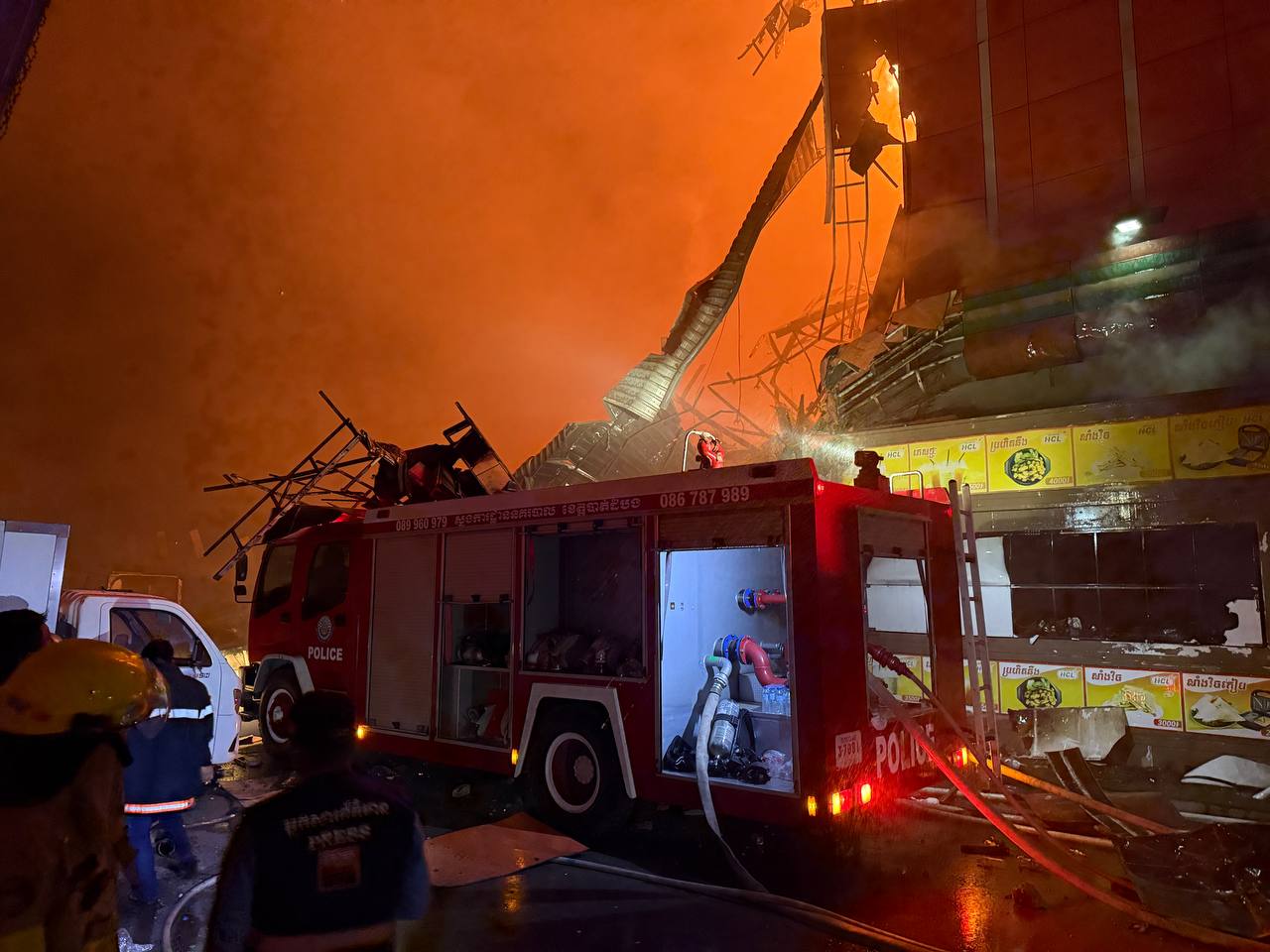 ខេត្តបាត់ដំបង៖ អគ្គីភ័យអូសបន្លាយច្រើនម៉ោងបានលេបត្របាក់តួផ្សារទំនើបហេងឆៃលី ស្ថិតនៅសង្កាត់ស្វាយប៉ោ ក្រុងបាត់ដំបង អស់ស្ទើរទាំងស្រុង ហើយអគារតួផ្សារមួយផ្នែកធំ បានបាក់រលំ អណ្តាតភ្លើងឆាបឆេះចាប់ពីម៉ោងជិត១១យប់ ថ្ងៃទី២៣ តុលា ឆ្នំា២០២៥ រហូតដល់រលងអធ្រាត្រចូលដល់ទៀបភ្លឺថ្ងៃទី២៤ តុលា២០២៥ ។
