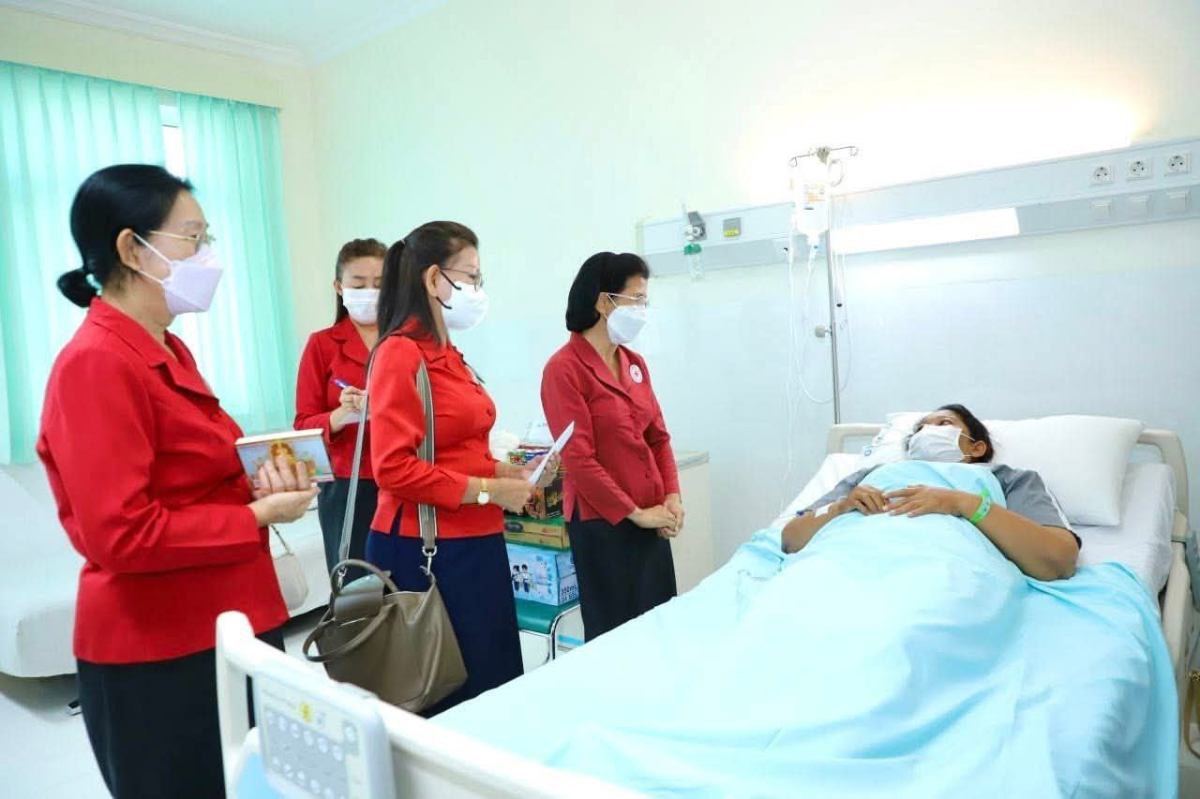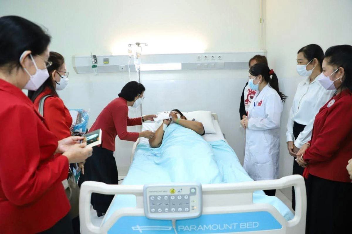ក្នុងឱកាសជួបសំណេះសំណាលសួរសុខទុក្ខនោះ លោកជំទាវ អគ្គលេខាធិការ បាននាំនូវការផ្តាំផ្ញើសាកសួរសុខទុក្ខ ដោយក្តីអាណិតអាសូរពីសំណាក់ សម្តេចកិត្តិព្រឹទ្ធបណ្ឌិត ប៊ុន រ៉ានី ហ៊ុនសែន ប្រធានកាកបាទក្រហមកម្ពុជា។ ជាមួយគ្នានេះ លោកជំទាវអគ្គលេខាធិការ បានជូនពរបងប្អូនវីរៈយុទ្ធជនវីរៈយុទ្ធនារីទាំងអស់សូមឆាប់បានជាសះស្បើយឡើងវិញ ជាពិសេសសូមកុំបាក់ទឹកចិត្ត និងគិតច្រើន ចូរអានសៀវភៅព្រះធម៌ គិត រឿងល្អៗ ដើម្បីរក្សាចិត្តឱ្យបានស្ងប់។ ទន្ទឹមនឹងនេះ ក៏សូមថ្លែងអំណរគុណដល់ក្រុមគ្រូពេទ្យទាំងអស់ដែលបានយកចិត្តទុកដាក់ព្យាបាល ផ្តល់ភាពកក់ក្តៅជូនដល់បងប្អូនយោធិន និងអ្នកជំងឺដទៃទៀតដែលកំពុងសម្រាកព្យាបាលនៅតាមមន្ទីរពេទ្យ។