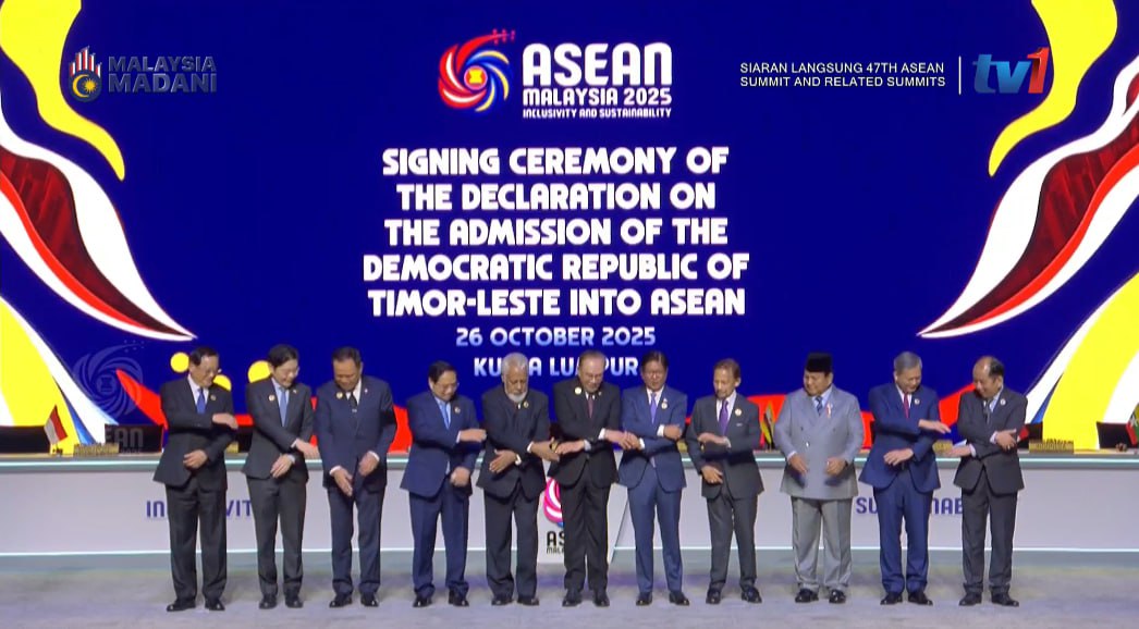 (ម៉ាឡេស៉ី)៖ ប្រទេសទីម័រឡេស្តេ ត្រូវបានប្រកាសបញ្ចូលជាសមាជិកអាស៊ានទី១១ ជាផ្លូវការ នៅព្រឹកថ្ងៃទី២៦ ខែតុលា ឆ្នាំ២០២៥នេះ ក្នុងកិច្ចប្រជុំកំពូលអាស៊ាន លើកទី៤៧ នាទីក្រុងកូឡាឡាំពួ ប្រទេសម៉ាឡេស៊ី។
