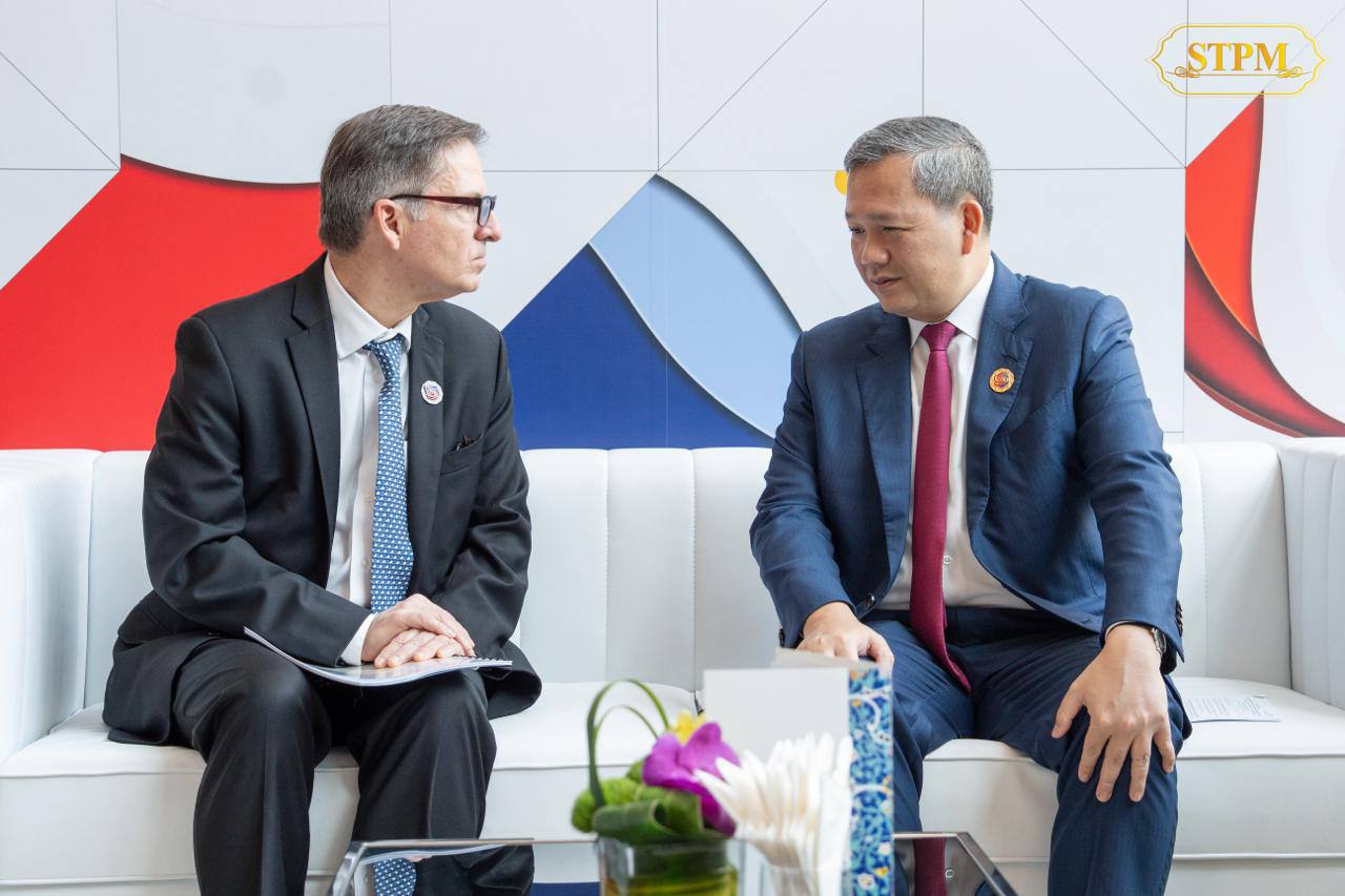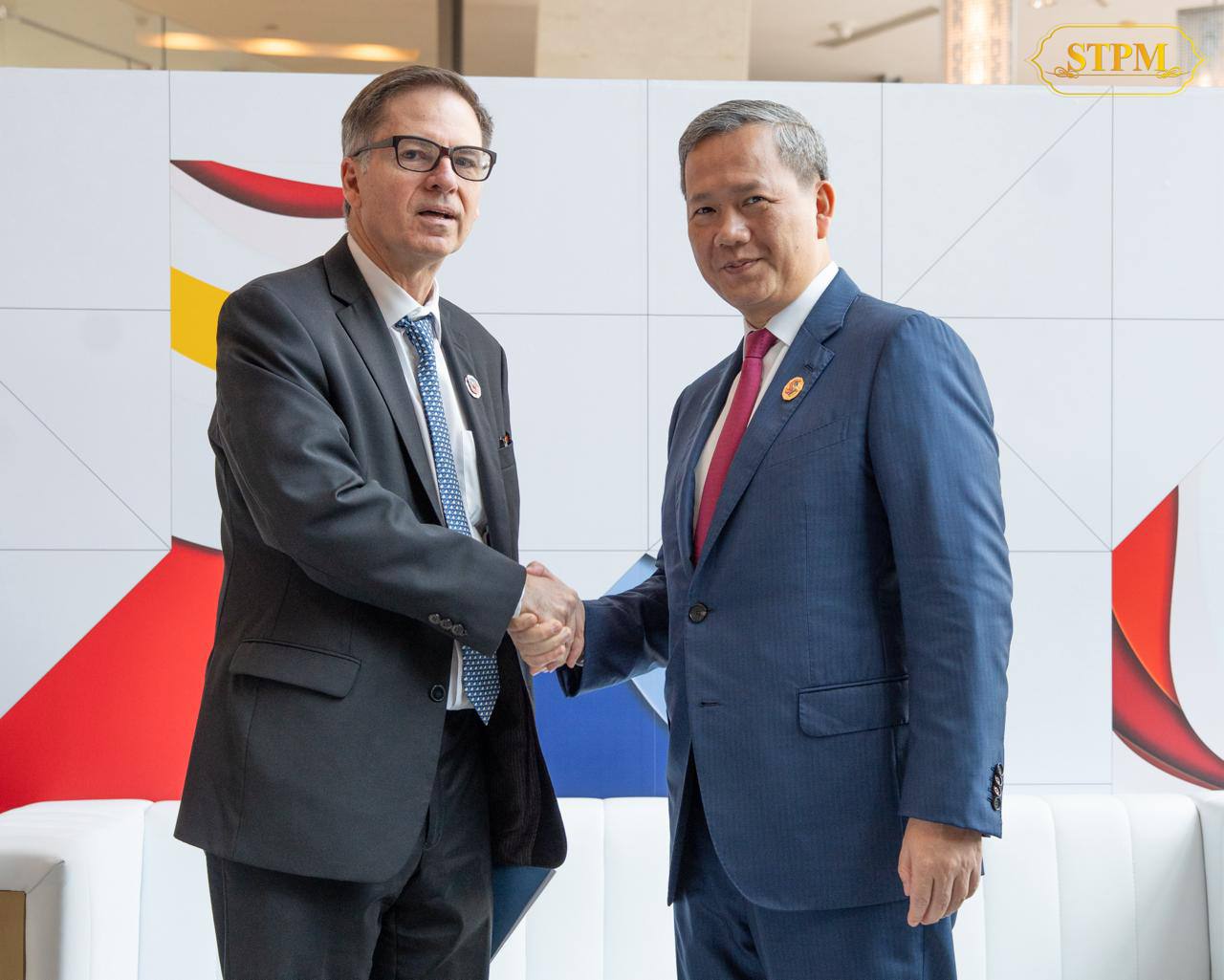 សម្តេចមហាបវរធិបតី ហ៊ុន ម៉ាណែត នាយករដ្ឋមន្ត្រីនៃព្រះរាជាណាចក្រកម្ពុជា ជួបជាមួយលោក Carlos Felipe Jaramillo អនុប្រធានធនាគារពិភពលោក ទទួលបន្ទុកតំបន់អាស៊ីបូព៌ា និងប៉ាស៊ីហ្វិក ក្នុងជំនួបសម្តែងការគួរសម និងពិភាក្សាការងារ។