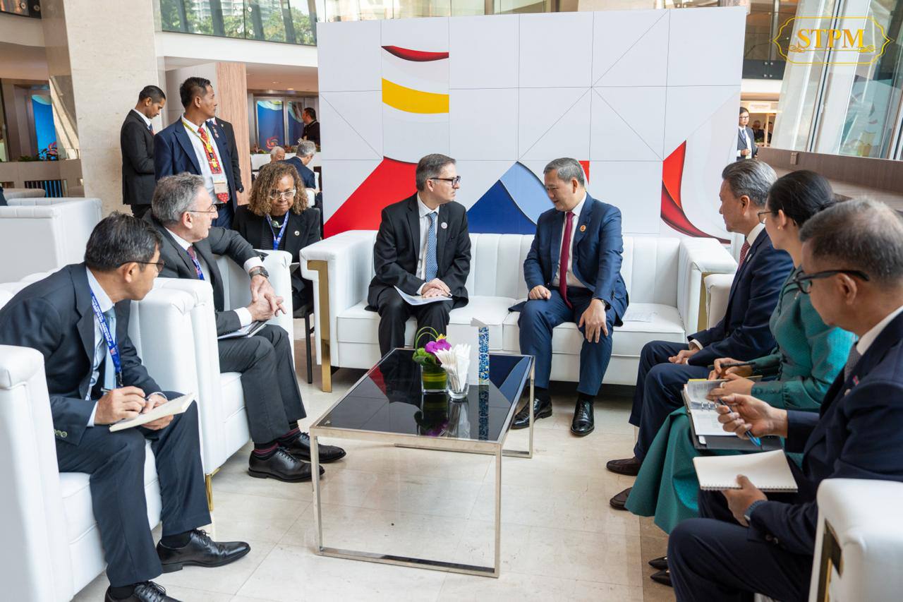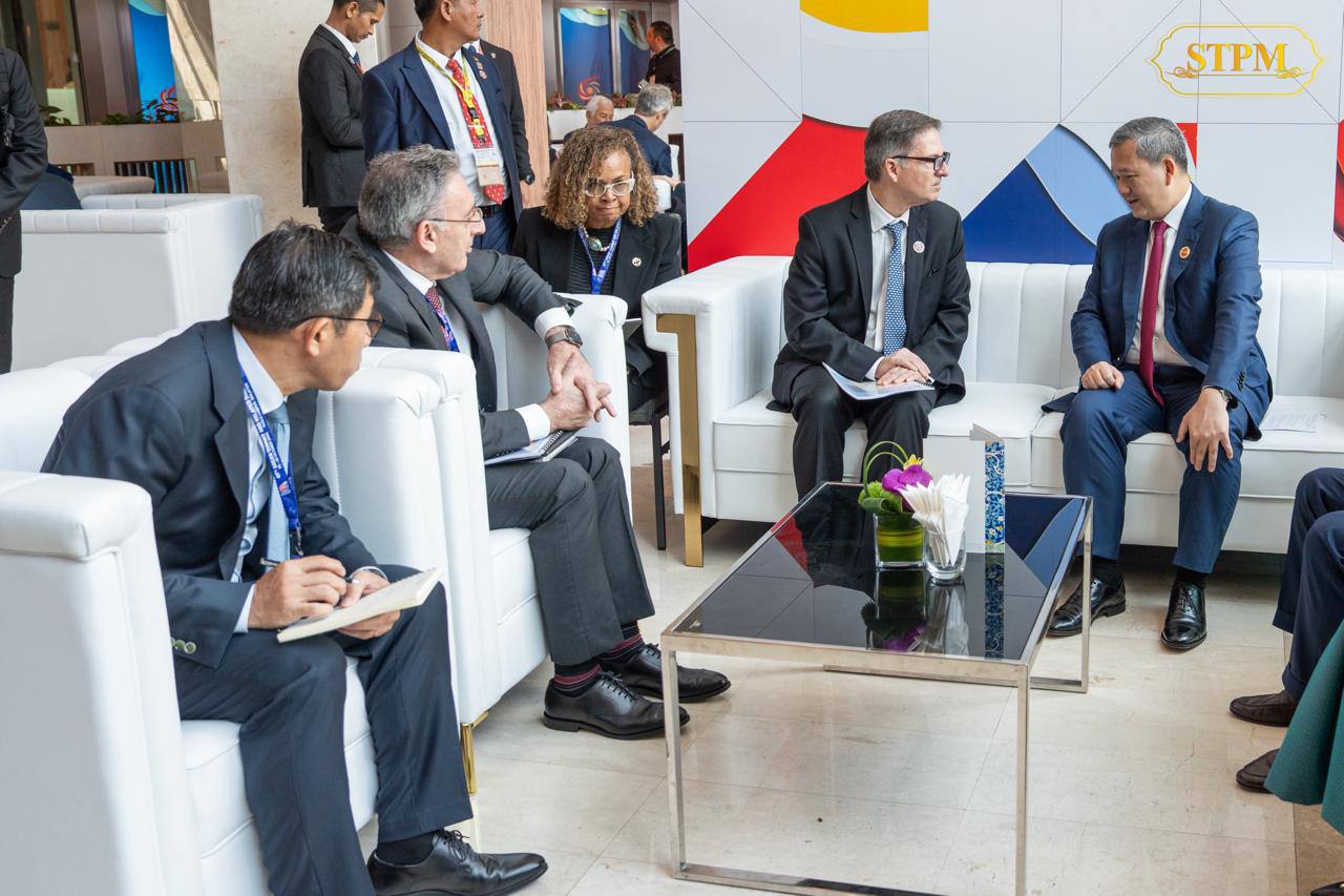 Receiving a courtesy call and having a discussion with Mr. Carlos Felipe Jaramillo, World Bank Vice President for East Asia and Pacific.