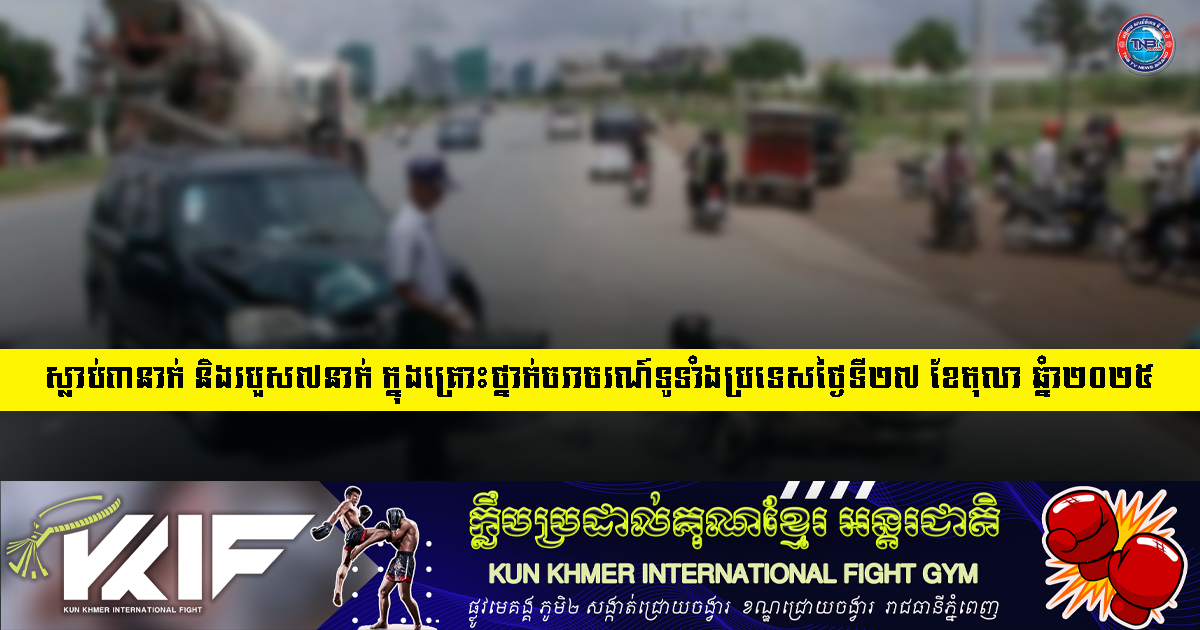 ស្លាប់៣នាក់ និងរបួស៧នាក់ ក្នុងគ្រោះថ្នាក់ចរាចរណ៍ទូទាំងប្រទេសថ្ងៃទី២៧ ខែតុលា ឆ្នំា២០២៥
