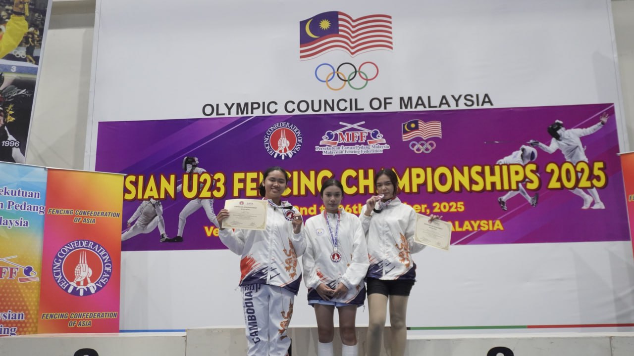 (ភ្នំពេញ)៖ ក្រុមកីឡាការិនីគុនដាវកម្ពុជា បានសាងភាពភ្ញាក់ផ្អើល ជាមួយការបង្កើតប្រវត្តិសាស្ដ្រថ្មី ឈ្នះមេដាយសំរឹទ្ធ ១គ្រឿង លើវិញ្ញាសាដាវកាប នៅក្នុងការប្រកួតកីឡាគុនដាវជ្រើសរើសជើងឯកអាស៊ីអាយុក្រោម ២៣ឆ្នាំ ឆ្នាំ២០២៥ នៅទីក្រុងគូឡាឡាំពួរ ប្រទេសម៉ាឡេស៊ី កាលពីចុងសប្ដាហ៍កន្លងទៅ។