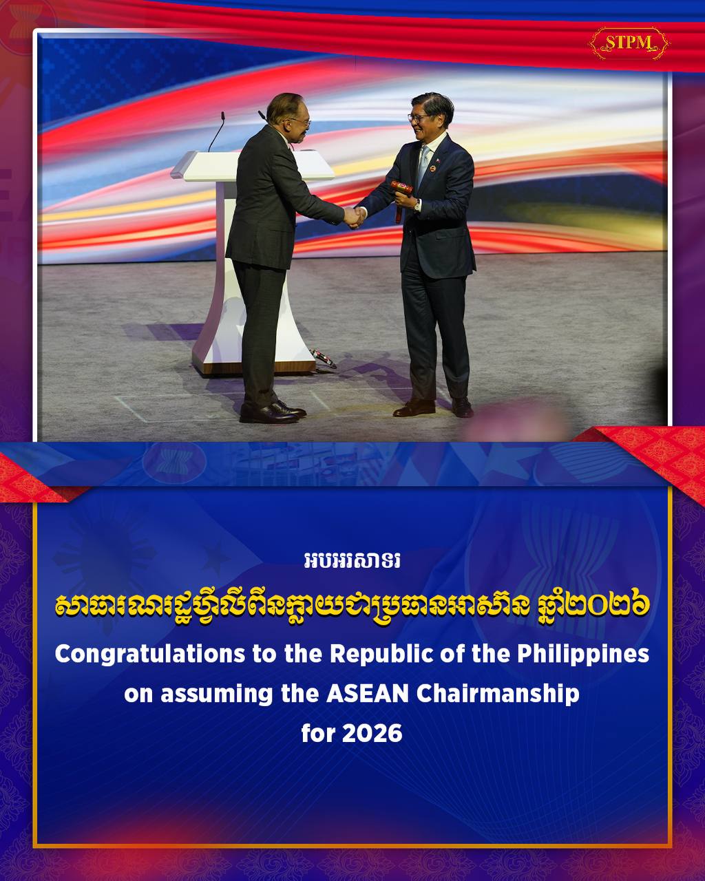 Congratulations to the Republic of the Philippines on assuming the ASEAN Chairmanship for 2026.