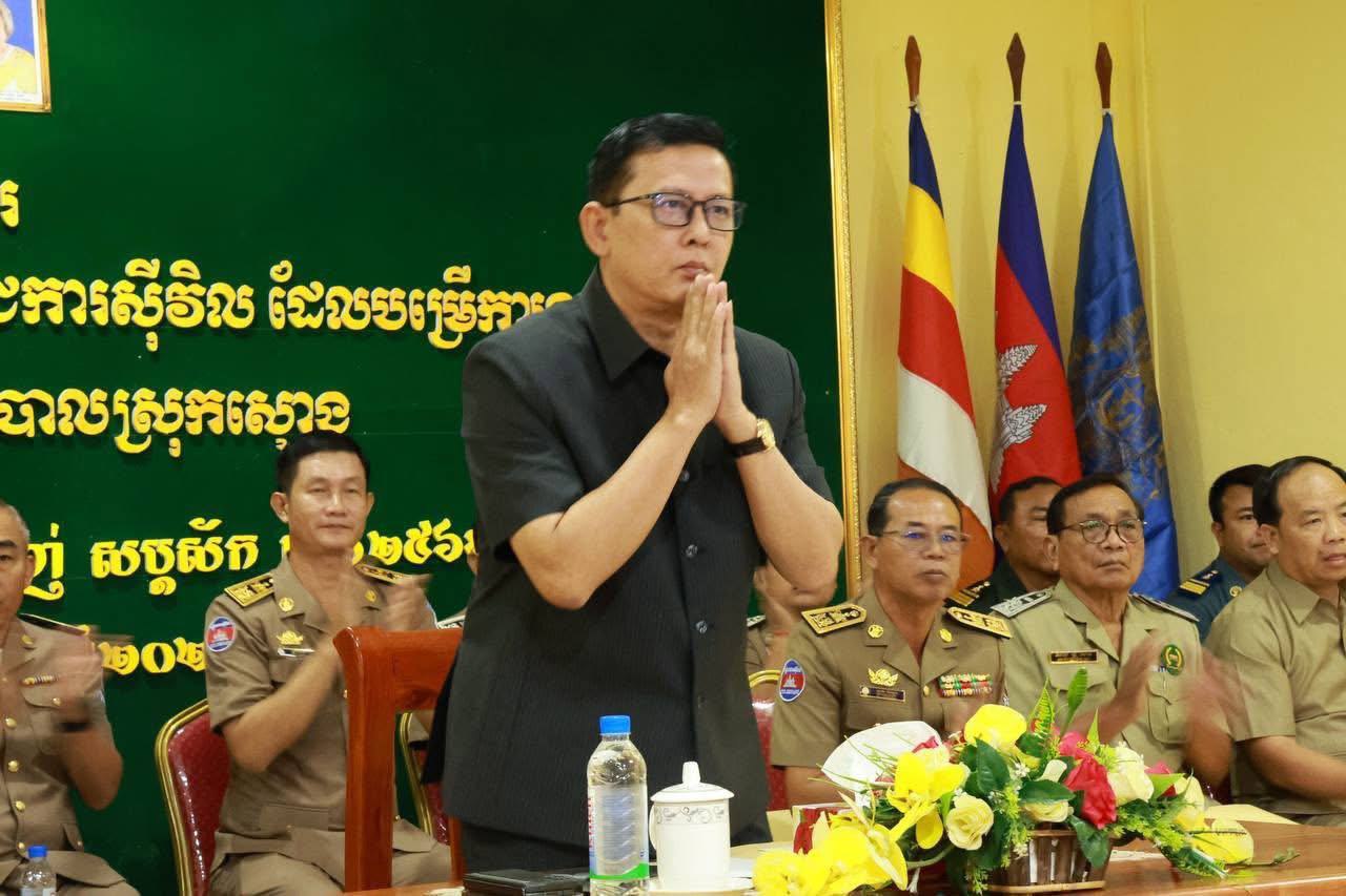 នៅថ្ងៃអង្គារ ៧កើត ខែកត្តិក ឆ្នាំម្សាញ់ សប្តស័ក ពុទ្ធសករាជ ២៥៦៩ ត្រូវនឹងថ្ងៃទី២៨ ខែតុលា ឆ្នាំ២០២៥ ឯកឧត្តម ចាន់ យុត្ថា រដ្ឋលេខាធិការ និងជាអនុប្រធានក្រុមការងាររាជរដ្ឋាភិបាលចុះមូលដ្ឋានស្រុកស្ទោង តំណាងដ៏ខ្ពង់ខ្ពស់ឯកឧត្ដម ថោ ជេដ្ឋា រដ្ឋមន្ត្រីក្រសួងធនធានទឹក និងឧតុនិយម និងជាប្រធានក្រុមការងាររាជរដ្ឋាភិបាលចុះមូលដ្ឋានស្រុកស្ទោងបានអញ្ជើញជាអធិបតីក្នុងពិធីសំណេះសំណាល និងបំពាក់គ្រឿងឥស្សរិយយសជូនមន្ត្រីរាជការចំណុះរដ្ឋបាលស្រុកស្ទោង ចំនួន ១៤២នាក់។