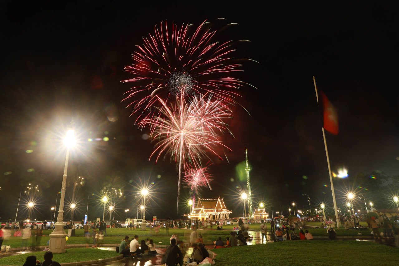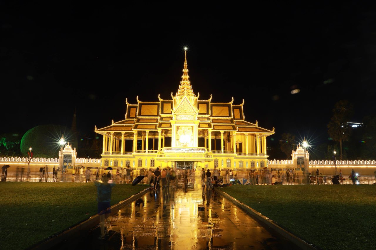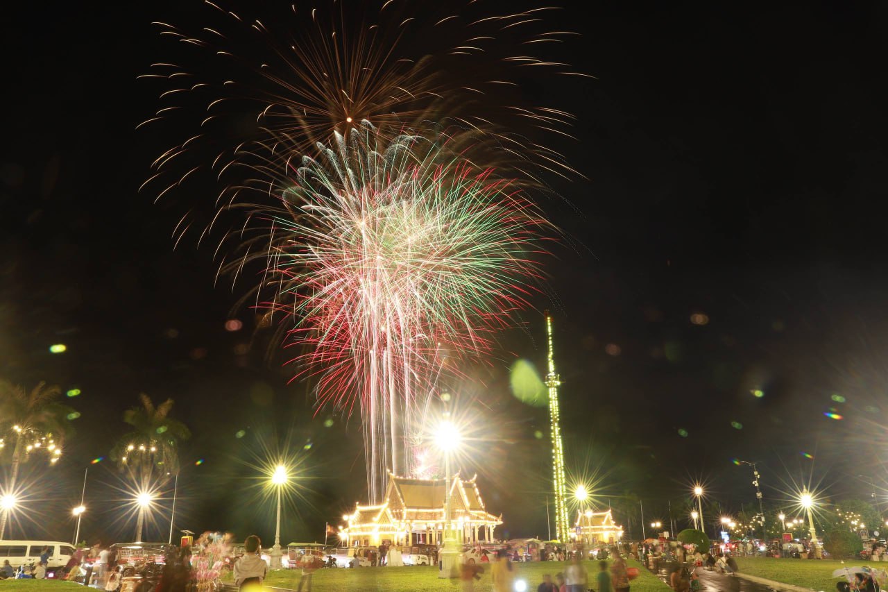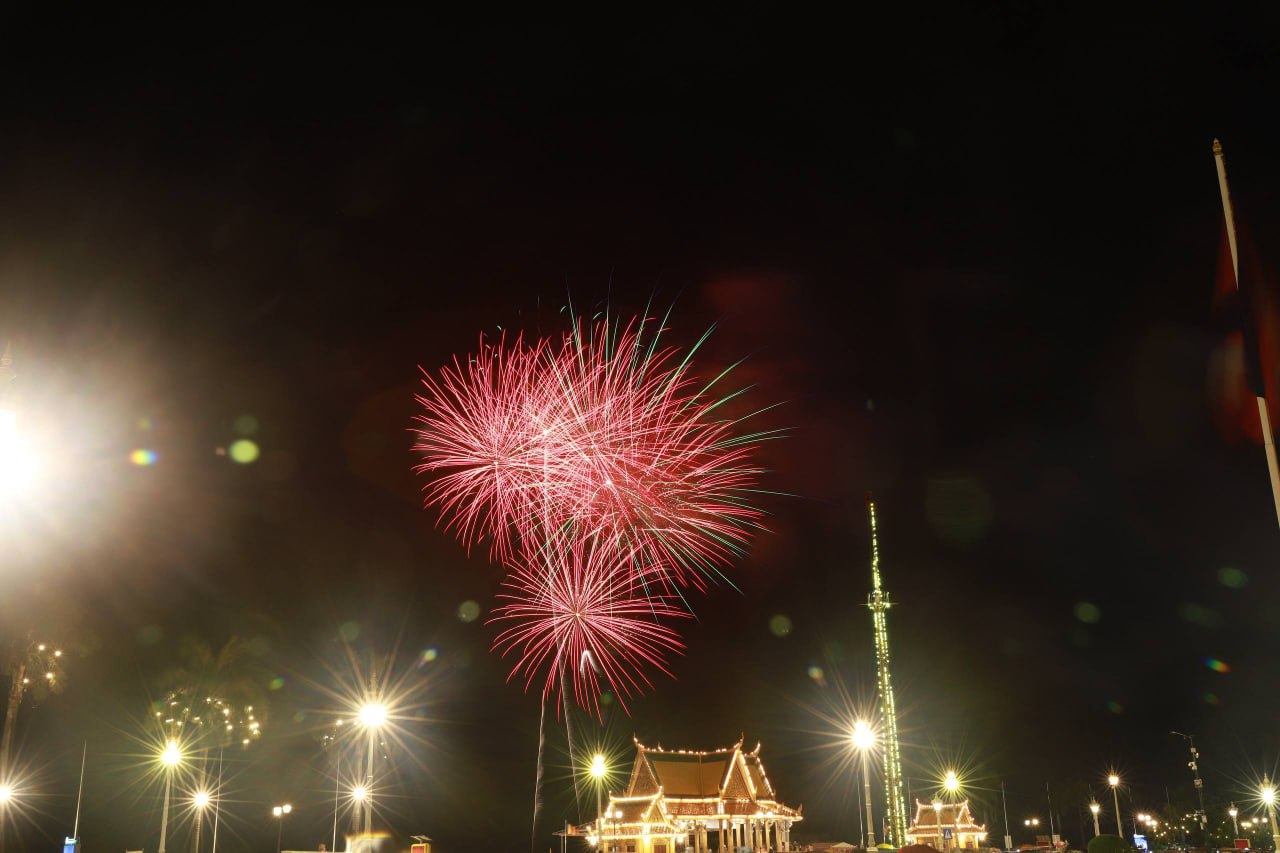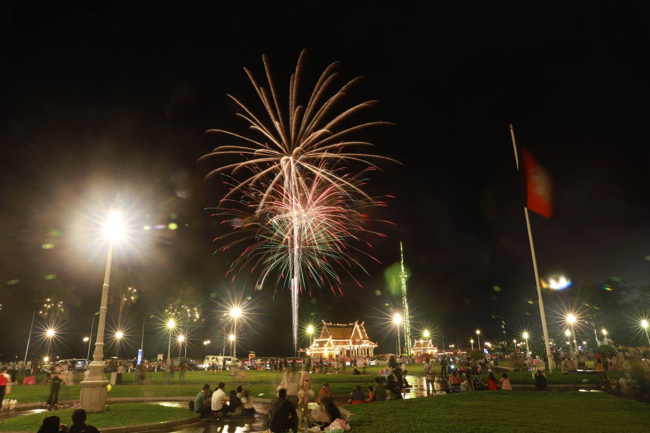ពិធីអុជកាំជ្រួច នៅមុខព្រះបរមរាជវាំង នាយប់ថ្ងៃទី២៩ ខែតុលា ឆ្នាំ២០២៥ ដើម្បីអបអរសាទរព្រះរាជពិធីខួបលើកទី២១ នៃការគ្រងព្រះបរមសិរីរាជសម្បត្តិ ព្រះករុណា ព្រះបាទសម្តេចព្រះបរមនាថ នរោត្តម សីហមុនី ព្រះមហាក្សត្រនៃព្រះរាជាណាចក្រកម្ពុជា ជាទីគោរពសក្ការៈដ៏ខ្ពងខ្ពស់បំផុត។