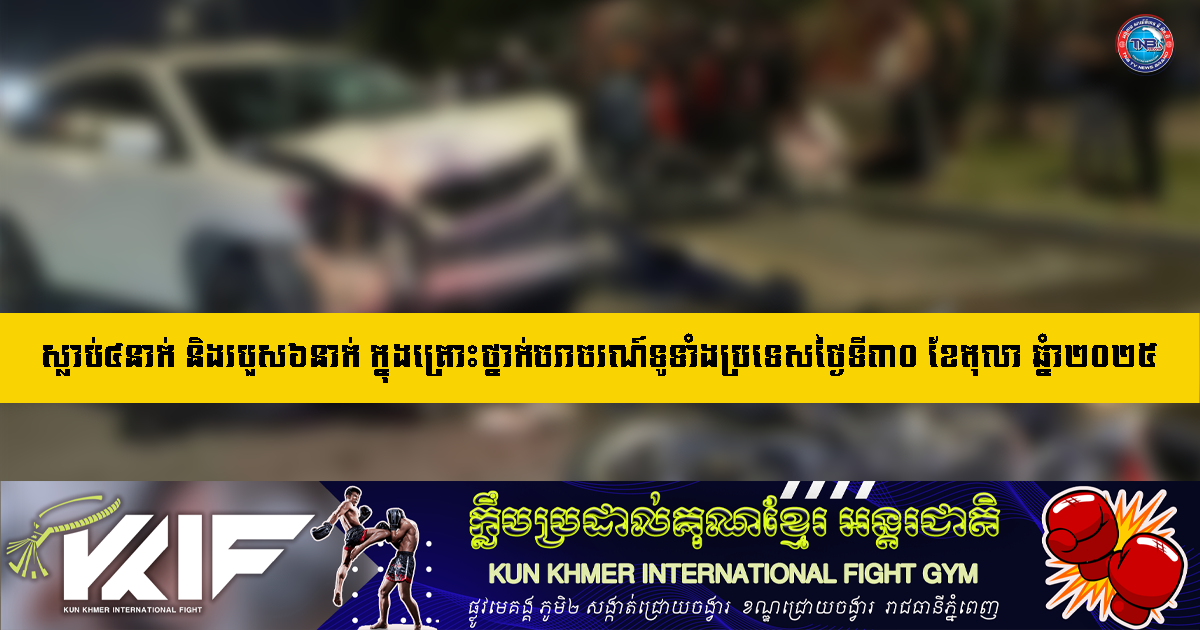 ស្លាប់៤នាក់ និងរបួស៦នាក់ ក្នុងគ្រោះថ្នាក់ចរាចរណ៍ទូទាំងប្រទេសថ្ងៃទី៣០ ខែតុលា ឆ្នំា២០២៥