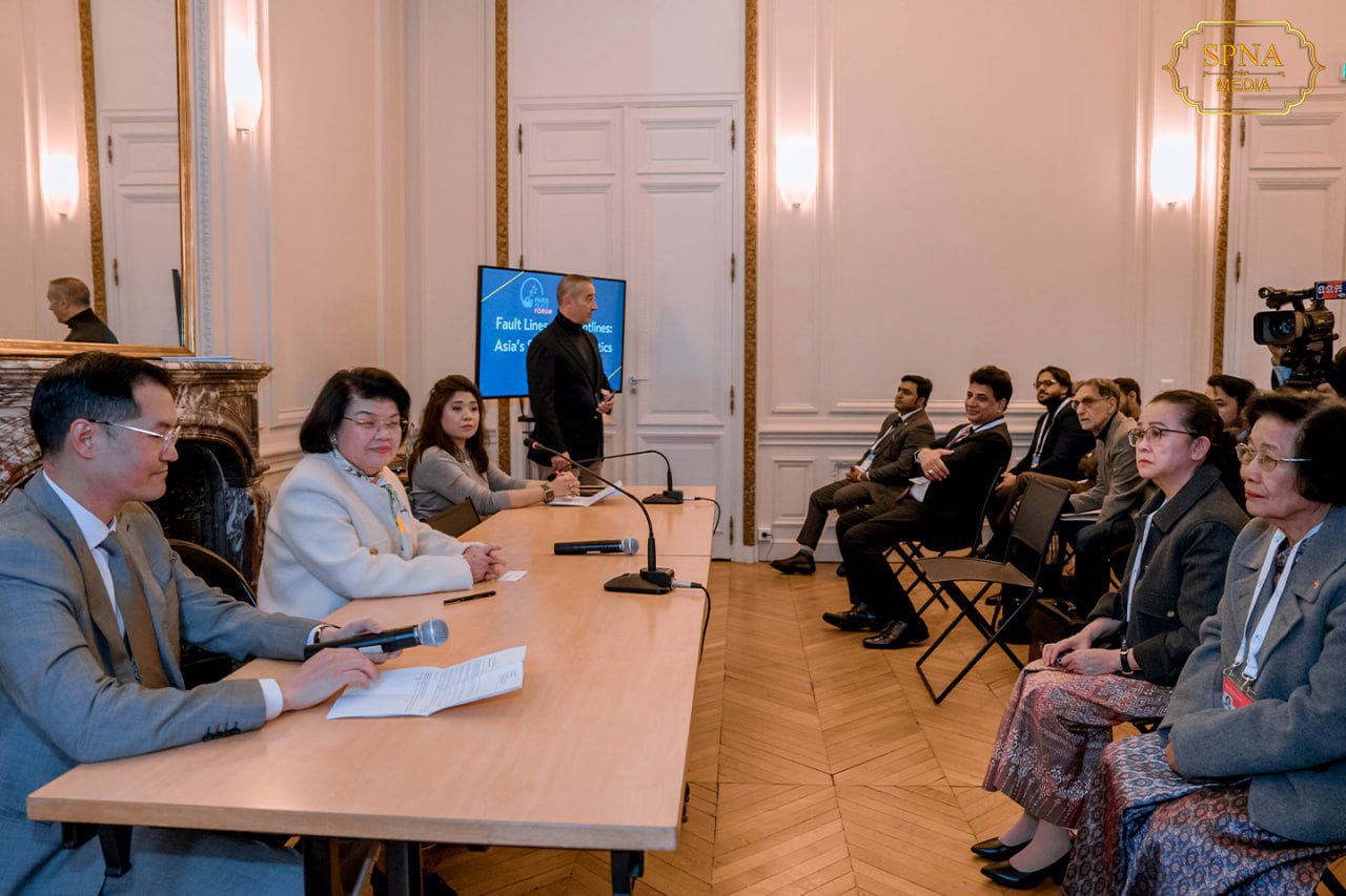នៅក្នុងកិច្ចពិភាក្សាតុមូលមួយ នៅរសៀលថ្ងៃទី៣០ ខែតុលា ឆ្នាំ២០២៥ ក្រោមប្រធានបទ«ការបែកបាក់ និងការប្រឈមមុខដាក់គ្នា៖ ការផ្លាស់ប្តូរភូមិសាស្រ្តនយោបាយនៅអាស៊ី» ដែលមានការចូលរួមពីសមាជិកស្ថាប័ននីតិប្បញ្ញត្តិ នីតិប្រតិបត្តិ អ្នកការទូត និងអ្នកស្រាវជ្រាវ។ ឆ្លៀតក្នុងឱកាសនោះ សម្តេចប្រធានរដ្ឋសភា ក៏បានសម្តែងនូវការអរគុណយ៉ាងជ្រាលជ្រៅចំពោះកិច្ចខិតខំសម្របសម្រួល និងការធ្វើជាសាក្សីរបស់ ឯកឧត្តម ដូណាល់ ត្រាំ ប្រធានាធិបតីសហរដ្ឋអាមេរិក និងឯកឧត្តម អាន់វ៉ា អ៊ីប្រាហ៊ីម នាយករដ្ឋមន្ត្រីម៉ាឡេស៊ី ក្នុងពិធីចុះហត្ថលេខាលើកិច្ចព្រមព្រៀងសន្តិភាពកម្ពុជា-ថៃ កាលពីថ្ងៃទី២៦ ខែតុលា កន្លងទៅ។