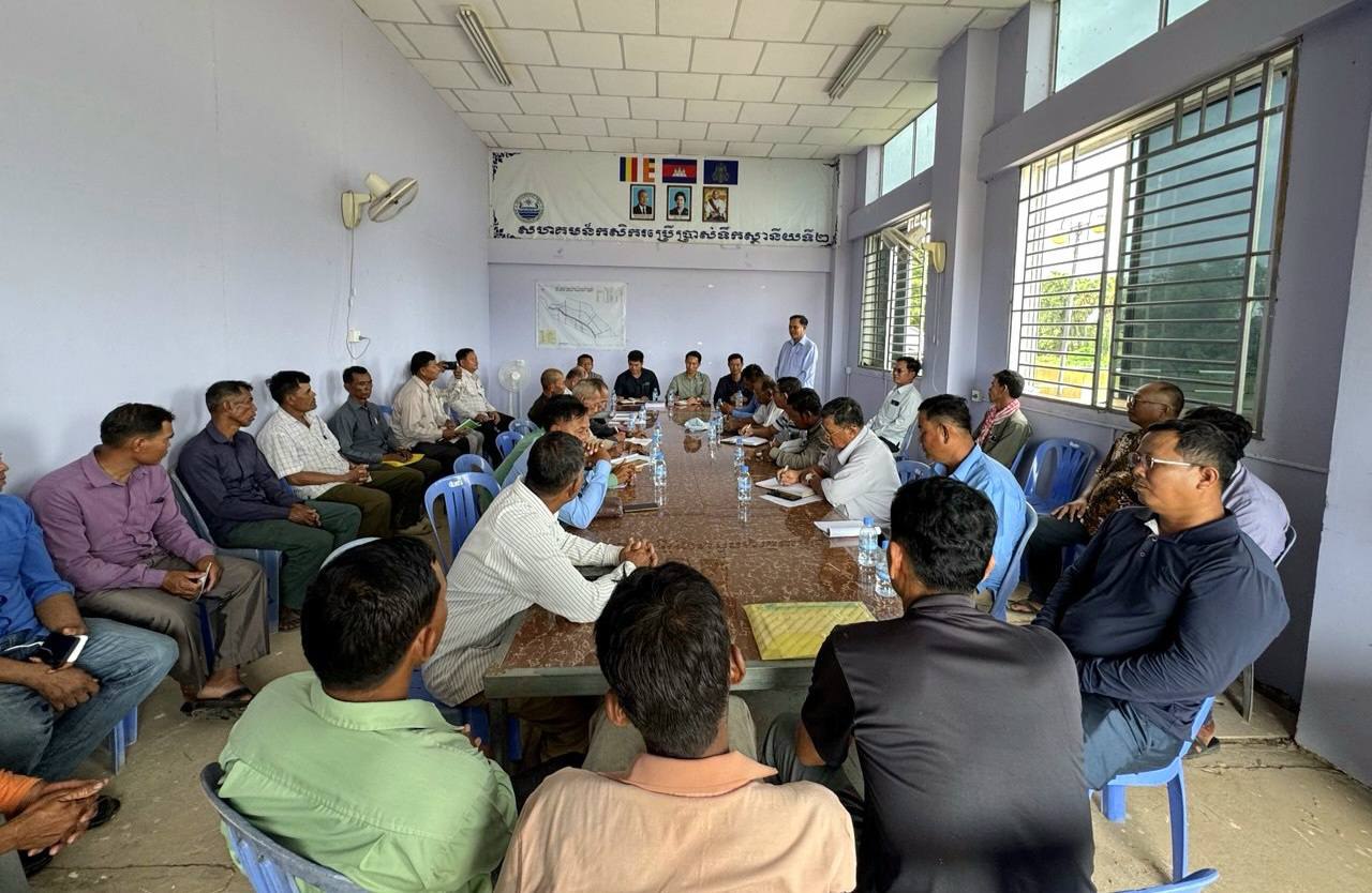 ក្នុងឱកាសនោះដែរ ឯកឧត្តមអនុរដ្ឋលេខាធិការ និងក្រុមការងារក៏បានជួបជាមួយគមន៍កសិករប្រើប្រាស់ទឹកនៃប្រព័ន្ធធារាសាស្រ្តការពារទឹកជំនន់ និងស្រោចស្រពកំពង់ត្របែកទី២និងទី៣ ដើម្បី ១)ពង្រឹង និងគាំទ្របច្ចេកទេសសម្រាប់សកម្មភាពរបស់សហគមន៍កសិករប្រើប្រាស់ទឹក ២)ពិភាក្សាអំពីវឌ្ឍនភាពការងារ និងការរីកចម្រើនរបស់សហគមន៍កសិករប្រើប្រាស់ទឹក (ស.ក.ប.ទ) ៣)ពន្យល់ណែនាំដល់គណៈកម្មាធិការ ស.ក.ប.ទ. អំពីការអនុវត្តនូវសកម្មភាពការងារដើម្បីចូលរួមគ្រប់គ្រង និងថែទាំប្រព័ន្ធធារាសាស្ត្រ (O&M) និង ៤)ណែនាំដល់គណៈកម្មាធិការ ស.ក.ប.ទ. អំពីការប្រមូលភាគទានប្រើប្រាស់ប្រព័ន្ធធារាសាស្រ្ត សម្រាប់ការទ្រទ្រង់ដល់កិច្ចដំណើការថែទាំប្រព័ន្ធធារាសាស្ត្រ។