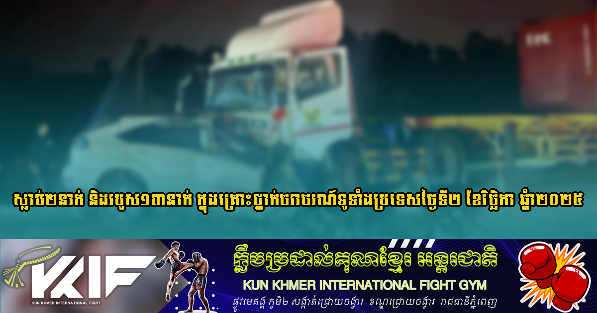 ស្លាប់២នាក់ និងរបួស១៣នាក់ ក្នុងគ្រោះថ្នាក់ចរាចរណ៍ទូទាំងប្រទេសថ្ងៃទី២ ខែវិច្ឆិកា ឆ្នំា២០២៥
