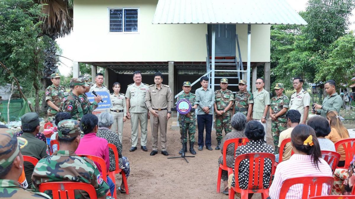 កំពង់ធំ៖ នៅថ្ងៃទី៣ ខែវិច្ឆិកា ឆ្នាំ២០២៥ ឧត្តមសេនីយ៍ទោ សោម ស៊ុន មេបញ្ជាការ តំបន់ប្រតិបត្តិការសឹករងកំពង់ធំ តំណាងគណៈកម្មាធិការសមាគមអតីតយុទ្ធជន និងនិវត្តជនកម្ពុជា ខេត្តកំពង់ធំ អមដំណើរដោយលោក វណ្ណៈ សោភានិត អភិបាលស្រុក ប្រធានសមាគមអតីតយុទ្ធជន និងនិវត្តជនកម្ពុជា ស្រុកប្រាសាទបល្ល័ង្ក បានដឹកនាំសហការី រួមជាមួយអាជ្ញាធរដែនដី ទៅប្រគល់ផ្ទះថ្មី ដែលទើបសាងសង់រួចនៅលើដីកម្មសិទ្ធិ របស់គ្រួសារអតីតយុទ្ធជនពលីដោយសារសង្គ្រាម មានដីតែមានជម្រករស់នៅមិនសមរម្យ នៅភូមិថ្នល់ ឃុំទួលគ្រើល ស្រុកប្រាសាទបល្ល័ង្ក ខេត្តកំពង់ធំ ។