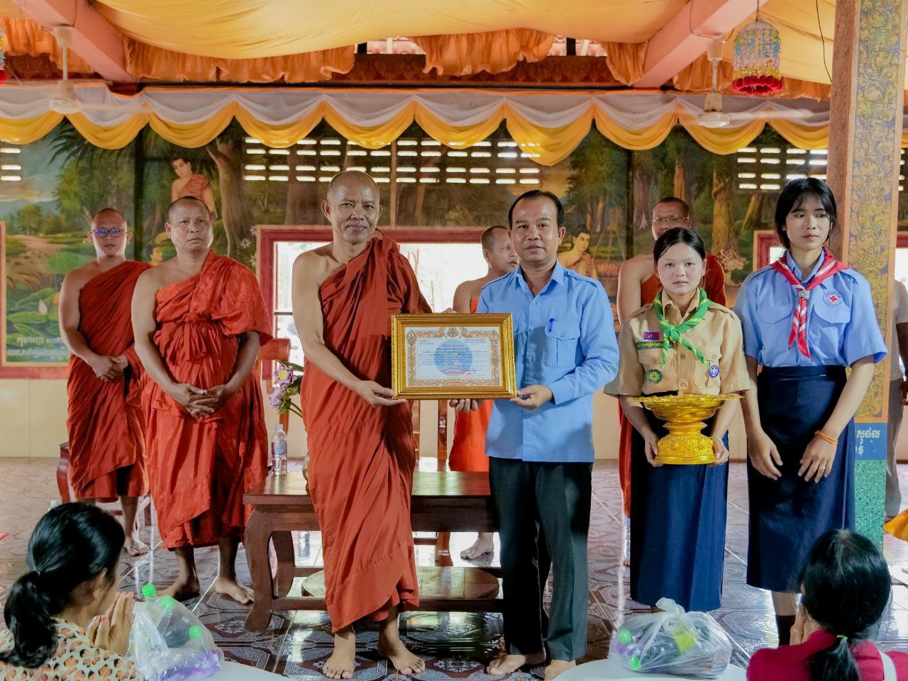ដែលអំណោយទាំងនេះជាអំណោយរបស់សប្បុរសជននៅសហរដ្ឋអាមេរិក តាមរយៈសម្ដេចព្រះព្រហ្មរតនមុនី ពិន សែម សិរីសុវណ្ណោ ព្រះប្រធានថេរសភាសង្ឃព្រះពុទ្ធសាសនា នៃព្រះរាជាណាចក្រកម្ពុជា និងជាសម្ដេចព្រះចៅអធិការវត្តរាជបូណ៌ ក្រុងសៀមរាប។