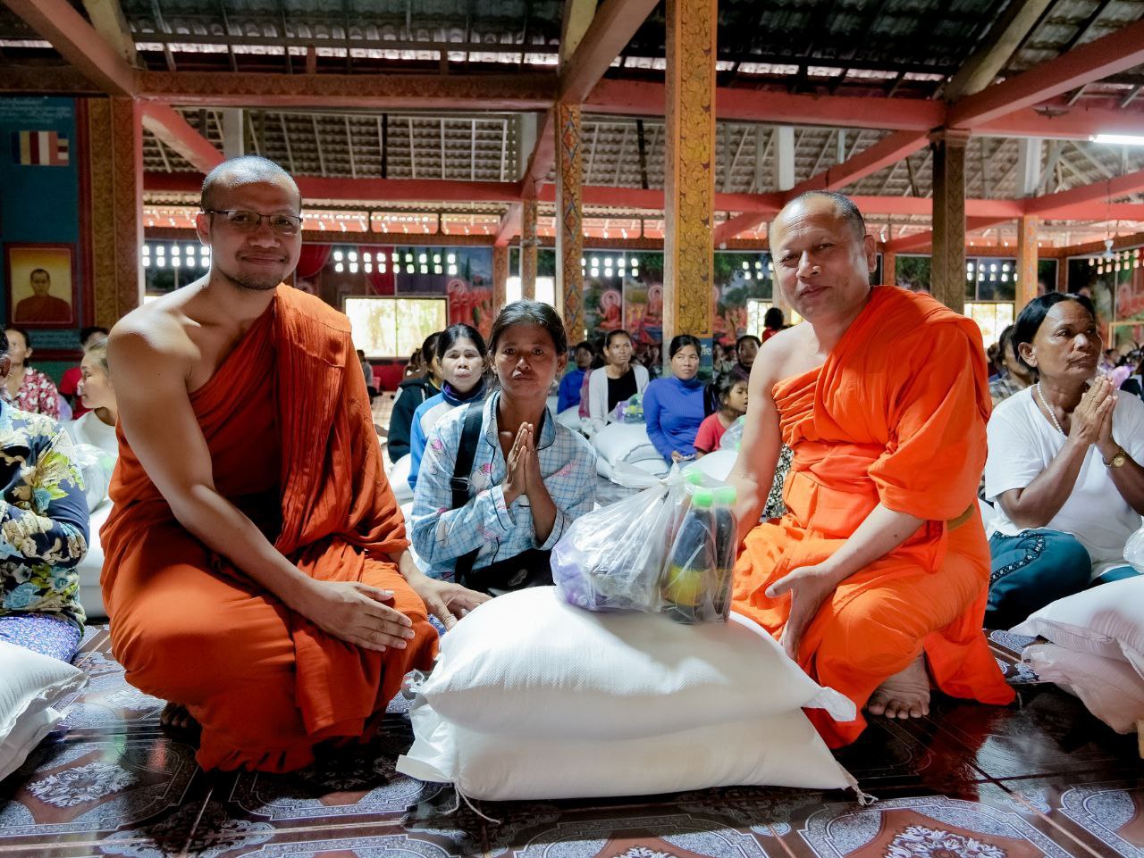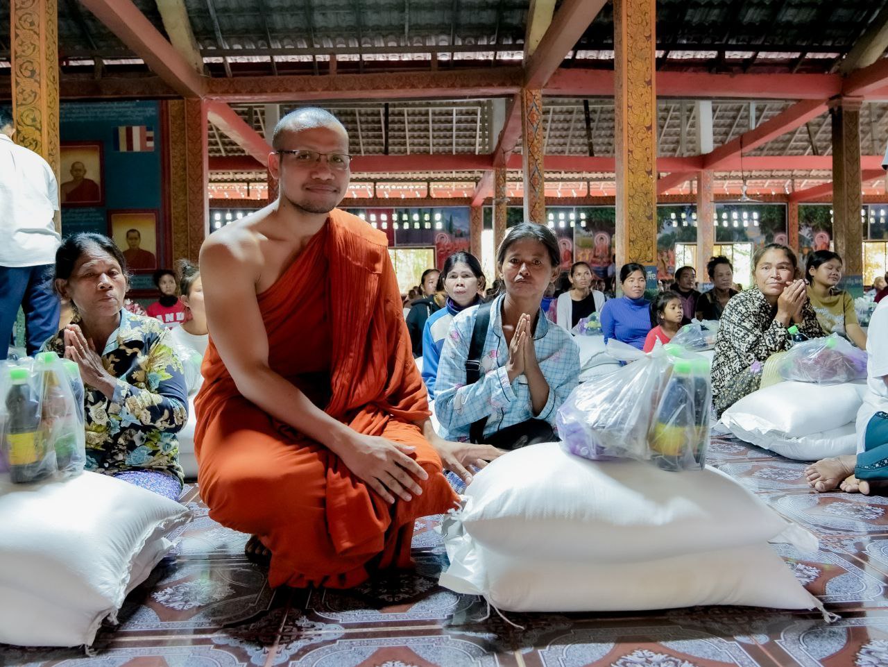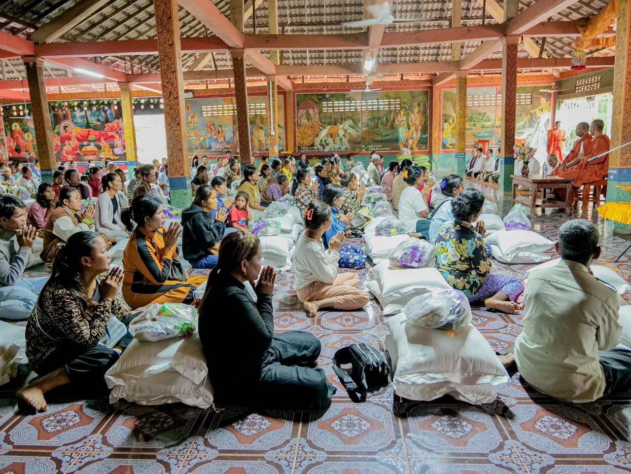 (សៀមរាប)៖ ព្រះសង្ឃខេត្តសៀមរាប ដឹកនាំដោយព្រះបវរវិជ្ជា ទេព ភឿន ព្រះវិន័យធរគណខេត្តសៀមរាប នៅរសៀលថ្ងៃទី៤ ខែវិច្ឆិកា ឆ្នាំ២០២៥ បាននិមន្តសួរសុខទុក្ខ នឹងចែកស្បៀងអាហារជូនដល់ប្រជាពលរដ្ឋមានជីវភាពខ្វះខាតចំនួន ៥៩៨គ្រួសារ ស្ថិតនៅវត្តជ្រោយនាងងួន និងឃុំមោង ស្រុកស្រីស្នំ ខេត្តសៀមរាប ព្រមទាំងនៅវត្តបាត់ថ្កៅ ស្រុកចុងកាល ខេត្តឧត្តរមានជ័យ។