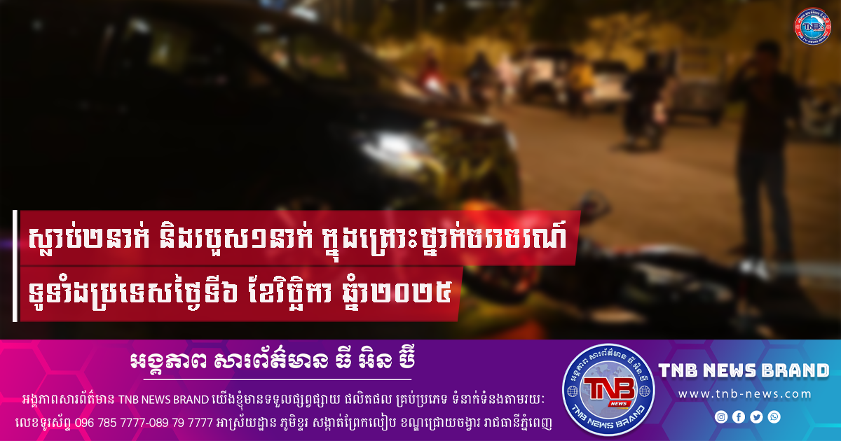 ស្លាប់២នាក់ និងរបួស១នាក់ ក្នុងគ្រោះថ្នាក់ចរាចរណ៍ទូទាំងប្រទេសថ្ងៃទី៦ ខែវិច្ឆិកា ឆ្នំា២០២៥