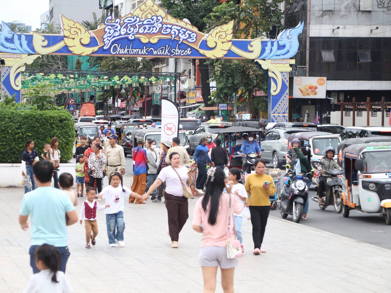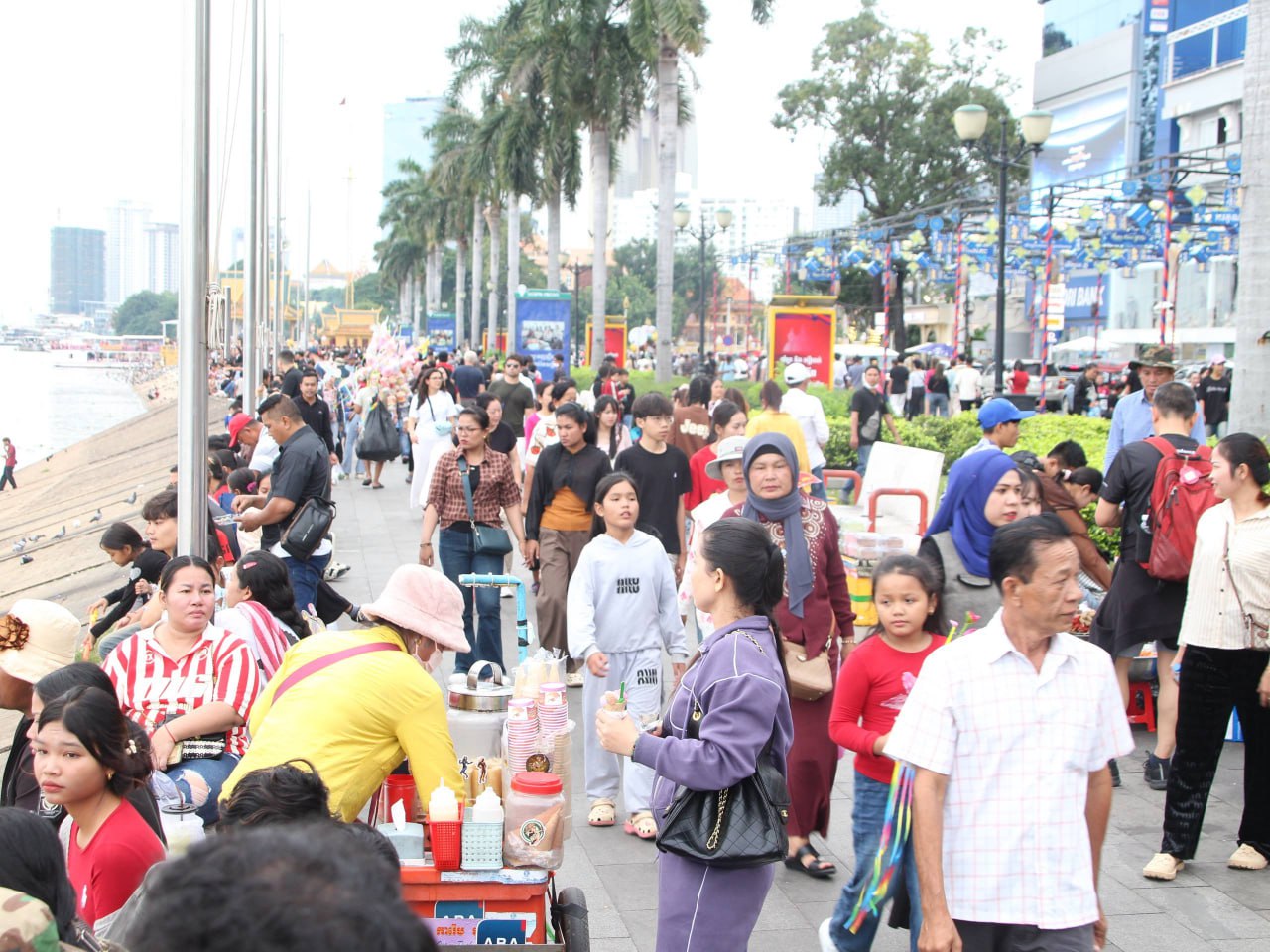 ភ្ញៀវទេសចរជាតិ និងអន្តរជាតិ បន្តមកលេងកម្សាន្ត នៅមុខព្រះបរមរាជវាំង និងផ្លូវថ្មើរជើង តាមបណ្តាយមាត់ទន្លេ