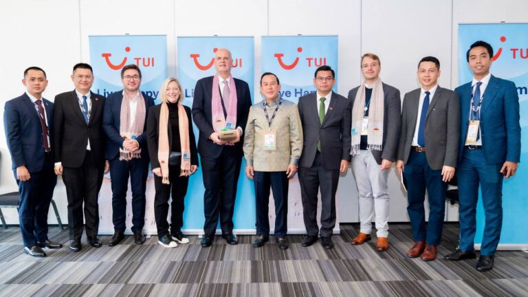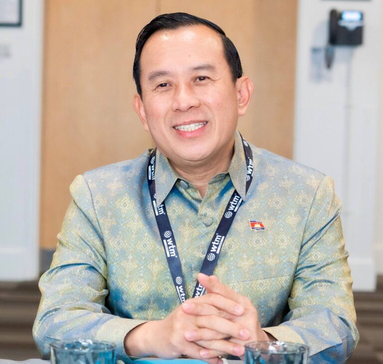 ភ្នំពេញ៖ នាឱកាសដឹកនាំគណៈប្រតិភូជាន់ខ្ពស់ក្រសួងទេសចរណ៍ និងក្រុមប្រឹក្សាភិបាលសិក្សាទីផ្សារ និងផ្សព្វផ្សាយកម្ពុជា (CTB) ចូលរួមពិព័រណ៍ទេសចរណ៍អន្តរជាតិ (World Travel Market) នៅទីក្រុងឡុងដ៏ ចក្រភពអង់គ្លេស ឯកឧត្តម ហួត ហាក់ រដ្ឋមន្រ្តីក្រសួងទេសចរណ៍ បានទទួលជួបពិភាក្សាការងារជាមួយលោក Thomas Ellerbeck សមាជិកនៃគណៈកម្មាធិការប្រតិបត្តិ និងជានាយកក្រុមសាជីវកម្ម និងកិច្ចការទំនាក់ទំនងខាងក្រៅនៃក្រុមហ៊ុន TUI Group និងសហការី អំពីកិច្ចសហប្រតិបត្តិការលើវិស័យទេសចរណ៍បន្ថែមទៀតជាមួយក្រុមហ៊ុន។