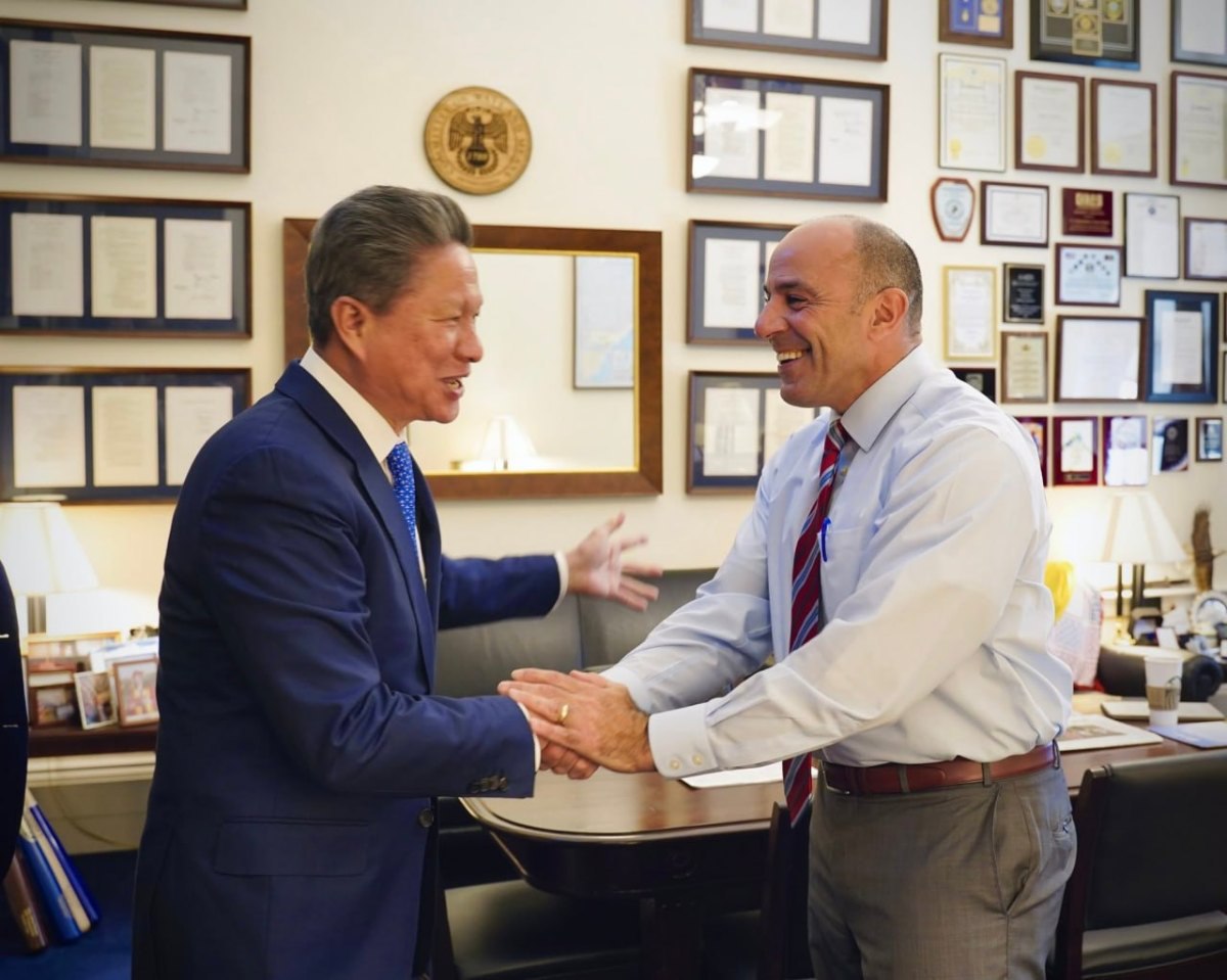 កាយវិការមិត្តភាពដ៏កក់ក្ដៅស្និទ្ធស្នាលរវាងឯកឧត្តម ស៊ុន ចាន់ថុល និងសមាជិកសភាអាមេរិកបង្ហាញពីមិត្តភាព ការគោរពឱ្យតម្លៃគ្នាទៅវិញទៅមក និងកិច្ចសហការរវាងប្រទេសទាំងពីរ