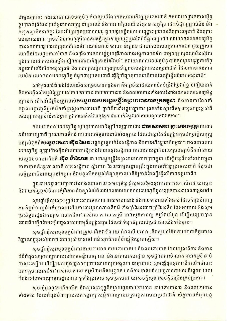 ឯកឧត្ដម នាយឧត្ដមសេនីយ៍ វង្ស ពិសេន អគ្គមេបញ្ជាការនៃកងយោធពលខេមរភូមិន្ទ ផ្ញើសារជូនពរ នាយទាហាន នាយទាហានរង និងពលទាហានទាំងអស់នៃកងយោធពលខេមរភូមិន្ទ ក្នុងឱកាស….