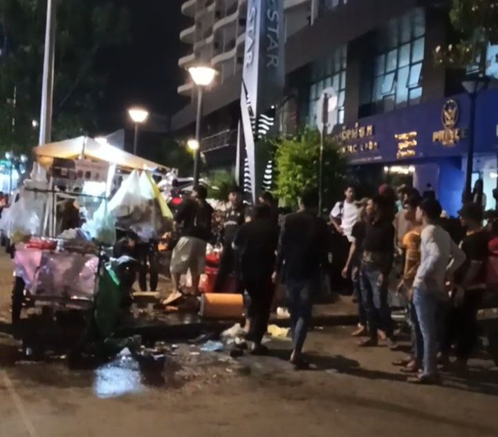 មុនពេលកើតហេតុមានប្រពលរដ្ឋបានឃើញបុរសម្នាក់ បេីក រថយន្ដ មួយគ្រឿងម៉ាក TOYOTA TACOMA ពាក់ ផ្លាក លេខ ភ្នំពេញ 2BD-6042 បេីក ថយ ក្រោយ ជ្រុល ទៅ បុក និងរទេះ លក់ ភេសជ្ជៈ មួយគ្រឿង ដែល ឈប់លក់ នៅ លេី ខឿន បណ្ដាលឲ្យ រងរបួស ធ្ងន់ ស្រាល បី នាក់ បញ្ជូន ទៅ មន្ទីរពេទ្យ ផងដែរ ភ្លាមៗ នោះ ម្ចាស់ រថយន្ត បង្កបានព្យាយាម បេីក រត់ គេច ខ្លួន តែ ត្រូវ បាន ប្រជាពលរដ្ឋ ដេញ ឃាត់ បាន យក មក កន្លែង កេីត ហេតុ វិញ ផងដែរ។