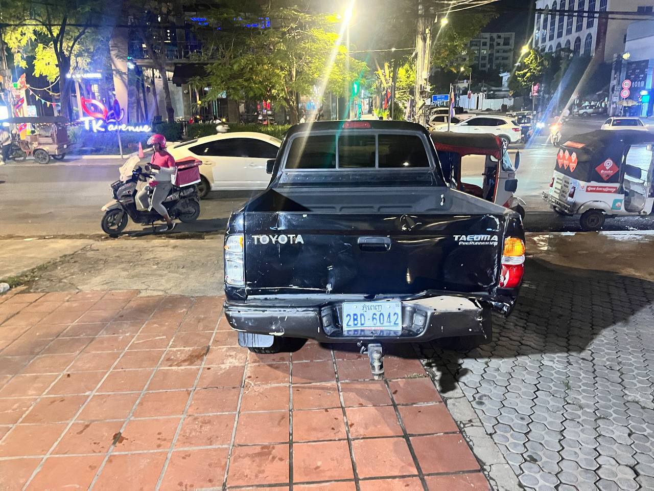 ភ្នំពេញៈ បុរសម្នាក់ បេីក រថយន្ដ មួយគ្រឿងម៉ាក TOYOTA TACOMA បេីក ថយ ក្រោយ ជ្រុល ទៅ បុក រទេះ លក់ ភេសជ្ជៈ មួយគ្រឿង ដែល ឈប់លក់ នៅ លេី ខឿន បណ្ដាលឲ្យ រងរបួស ធ្ងន់ ស្រាល បី នាក់ បញ្ជូន ទៅ មន្ទីរពេទ្យ ភ្លាមៗ ។ហេតុការណ៍ នេះ បាន កើត ឡើង កាលពីយប់ ថ្ងៃ ទី ០៩ ខែ វិច្ឆិកា ឆ្នាំ ២០២៥ ស្ថិត តាម បណ្ដោយ ផ្លូវ ៥១៦ កែង ផ្លូវ ៣១៥ សង្កាត់ បឹងកក់ ទី១ ខណ្ឌ ទួលគោក រាជធានី ភ្នំពេញ ។