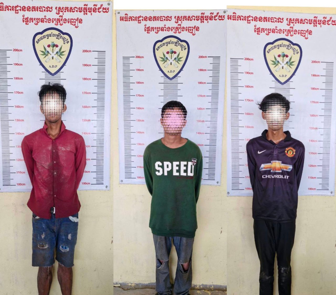 សាមគ្គីមុនីជ័យ.ដោយអនុវត្តតាមការដឹកនាំបញ្ជាដ៏ខ្ពង់ខ្ពស់ លោកឧត្ដមសេនីយ៍ទោ ឃឹម សុកខៃ ស្នងការនគរបាលខេត្តកំពង់ស្ពឺ និងបានការណែនាំពីលោកវរសេនីយ៍ទោ សាវ សុភក្ដី អធិការនគរបាលស្រុកសាមគ្គីមុនីជ័យ កំលាំងផ្នែកប្រឆាំងគ្រឿងញៀន បានសហការស្រាវជ្រាវក្រោយទទួលបានព័ត៌មានពីមហាជន ឈានទៅធ្វេីការបង្រ្កាបបានមុខសញ្ញាបាន នៅចំណុចព្រៃខាងកើតវត្តជ្រៃក្រាំងខ្នុរ ស្ថិតនៅភូមិក្រាំងខ្នុរ ឃុំដំណាក់រាំង ស្រុកសាមគ្គីមុនីជ័យ បានចុះទៅដល់ទីតាំងខាងលើ បានឃេីញមុខសញ្ញាសង្ស័យចំនួន០៣នាក់៖