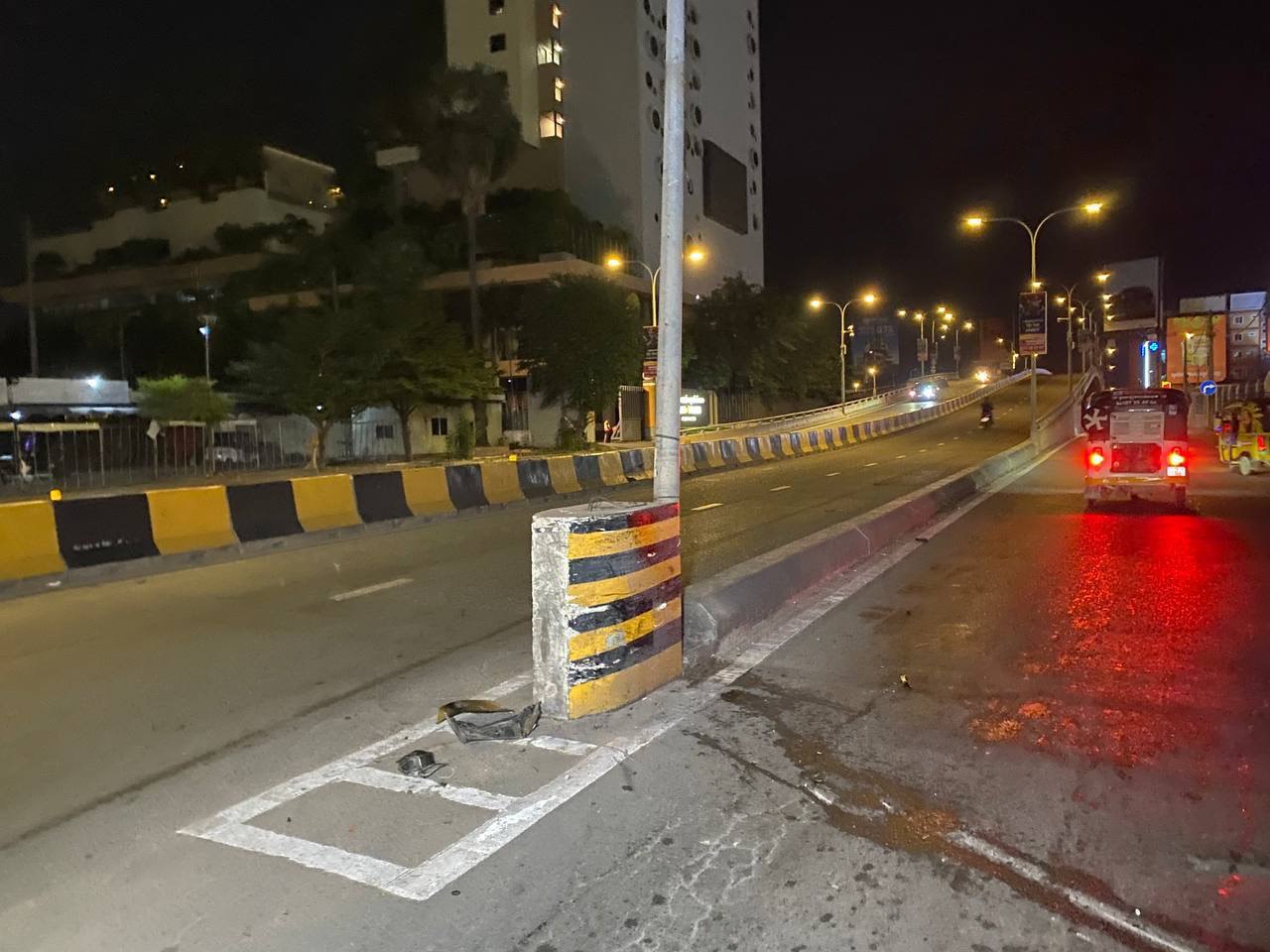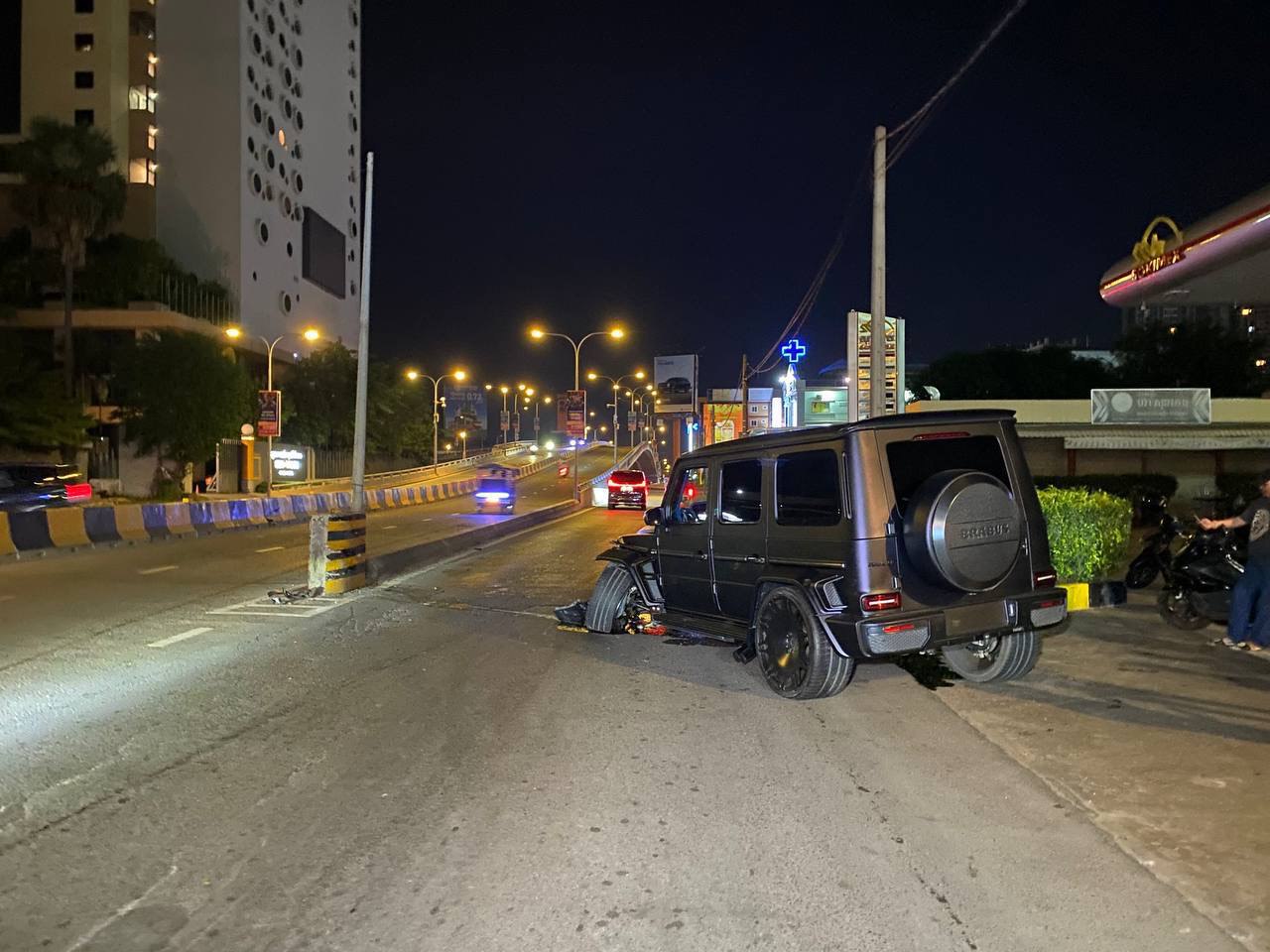 នៅមុនពេលកាត់ហេតុគេឃើញបុរសម្នាក់បានបើករថយន្តស៊េរីទំនើបម៉ាក BRABUS មួយគ្រឿងពណ៌ខ្មៅគ្មានស្លាកលេខធ្វើដំណើរតាមបណ្ដោយផ្លូវព្រះនរោត្តមទិសដៅពីជើងទៅត្បូងក្នុងល្បឿនលឿនលុះពេលបើកមកដល់ត្រង់ចំណុច កើតហេតុខាងលើខ្វះការប្រុងប្រយ័ត្នក៏បានរ៉េចង្កូតជ្រុលទៅបុករបាំងថ្មគល់ស្ពានអាកាសក្បាលថ្នល់យ៉ាងពេញទំហឹងធ្វើឲ្យរបាំងថ្មខូចខាតតិចតួចចំណែកឯរថយន្តបង្កវិញរងការខូចខាតផ្នែកខាងមុខដាច់កង់ខាងឆ្វេងមួយចំហៀងទៅមុខលែងរួចខូចខាតយ៉ាងដំណំសំណាងល្អមិនបង្កឲ្យគ្រោះថ្នាក់ទៅដល់មនុស្សហើយភ្លាមនោះដែរអ្នកបើករថយន្តបង្ករបានគេចចេញពីកន្លែងកើតហេតុបាត់ស្រមោល។