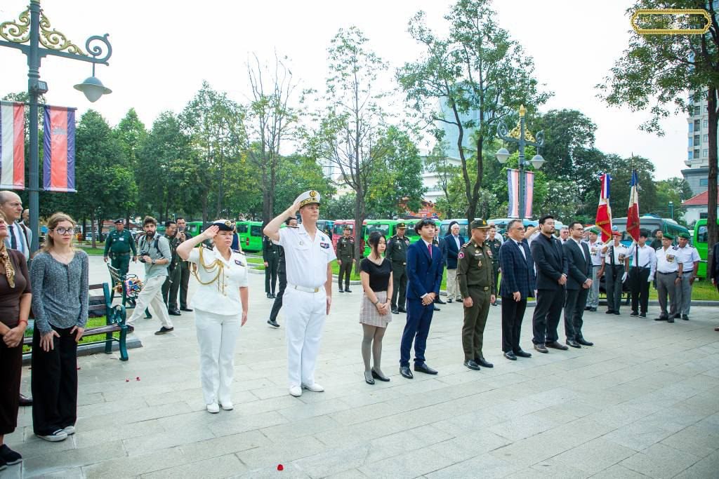 នេះជាឆ្នាំទី៣ ដែលស្ថានទូតបារាំង រៀបចំពិធីរម្លឹកខួបនៃការបញ្ចប់សង្គ្រាមលោកលើកទី១ នៅខាងមុខវិមានរម្លឹកដល់អ្នកទទួលអនិច្ចកម្មក្នុងសង្គ្រាមលោកលើកទី១ ឬហៅថាវិមាន«រូបពីរ » ដែលជានិមិត្តរូបដ៏មានអត្ថន័យនៃប្រវត្តិសាស្ត្ររួមបារាំង និងកម្ពុជា។ វិមាន«រូបពីរ»នេះត្រូវធ្លាប់បានសម្ពោធម្តងអំឡុងឆ្នាំ១៩២៥ ប៉ុន្តែត្រូវបានកម្ទេចដោយខ្មែរក្រហម។ ក្រោយមករាជរដ្ឋាភិបាលកម្ពុជា ក៏បានសាងសង់ឡើងវិញ និងដាក់សម្ពោធ កាលពីថ្ងៃទី១៤ ខែកក្កដា ឆ្នាំ២០២៣កន្លងទៅផងដែរ៕