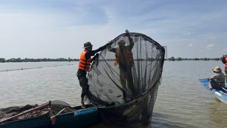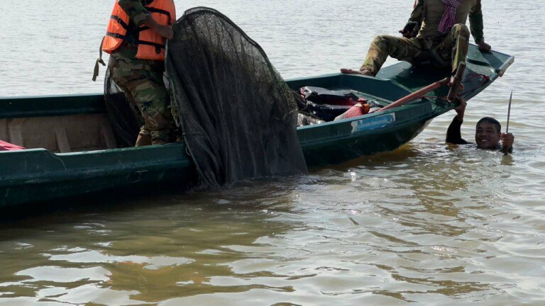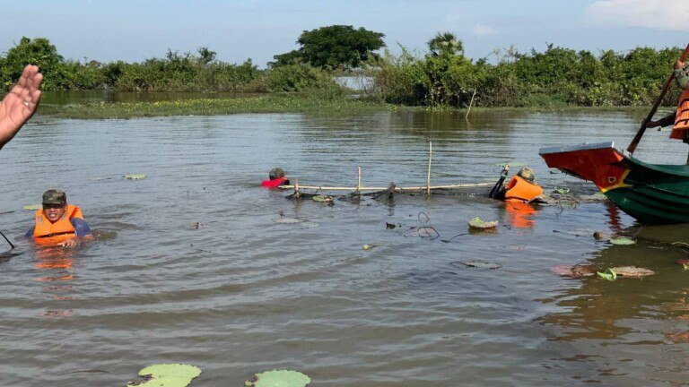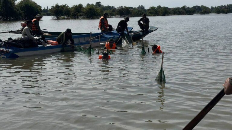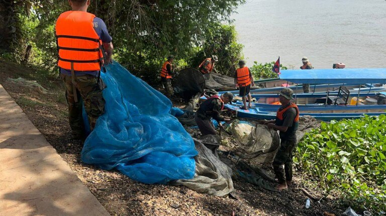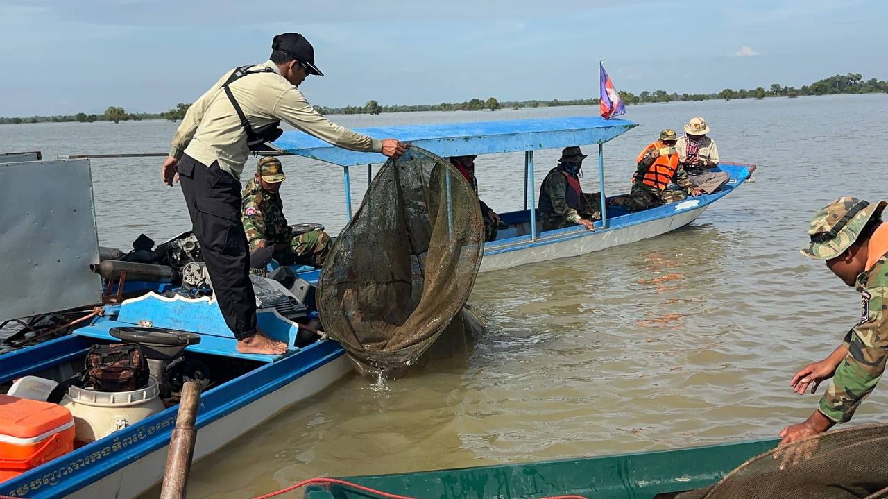 ខេត្តកំពង់ឆ្នាំង ៖ បទល្មើសនេសាទដាក់របាំងស្បៃមុងជាច្រើនកន្លែងក្នុងភូមិសាស្ត្រឃុំអំពិលទឹក និងឃុំកំពង់ត្រឡាចក្រោម ស្រុកកំពង់ត្រឡាចខេត្តកំពង់ឆ្នាំង ត្រូវបានមេបញ្ជាការតំបន់ប្រតិបត្តិការសឹករង កំពង់ឆ្នាំងដឹកនាំកងកម្លាំងចុះបង្ក្រាបជាច្រើនកន្លែងរយៈពេលពេញមួយថ្ងៃទី 10 ខែវិច្ឆិកា ឆ្នាំ 2025។