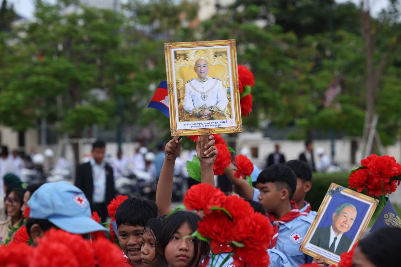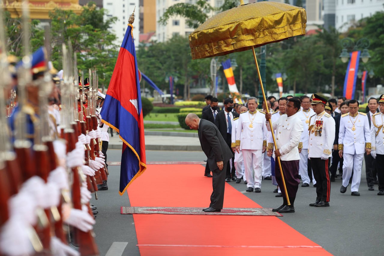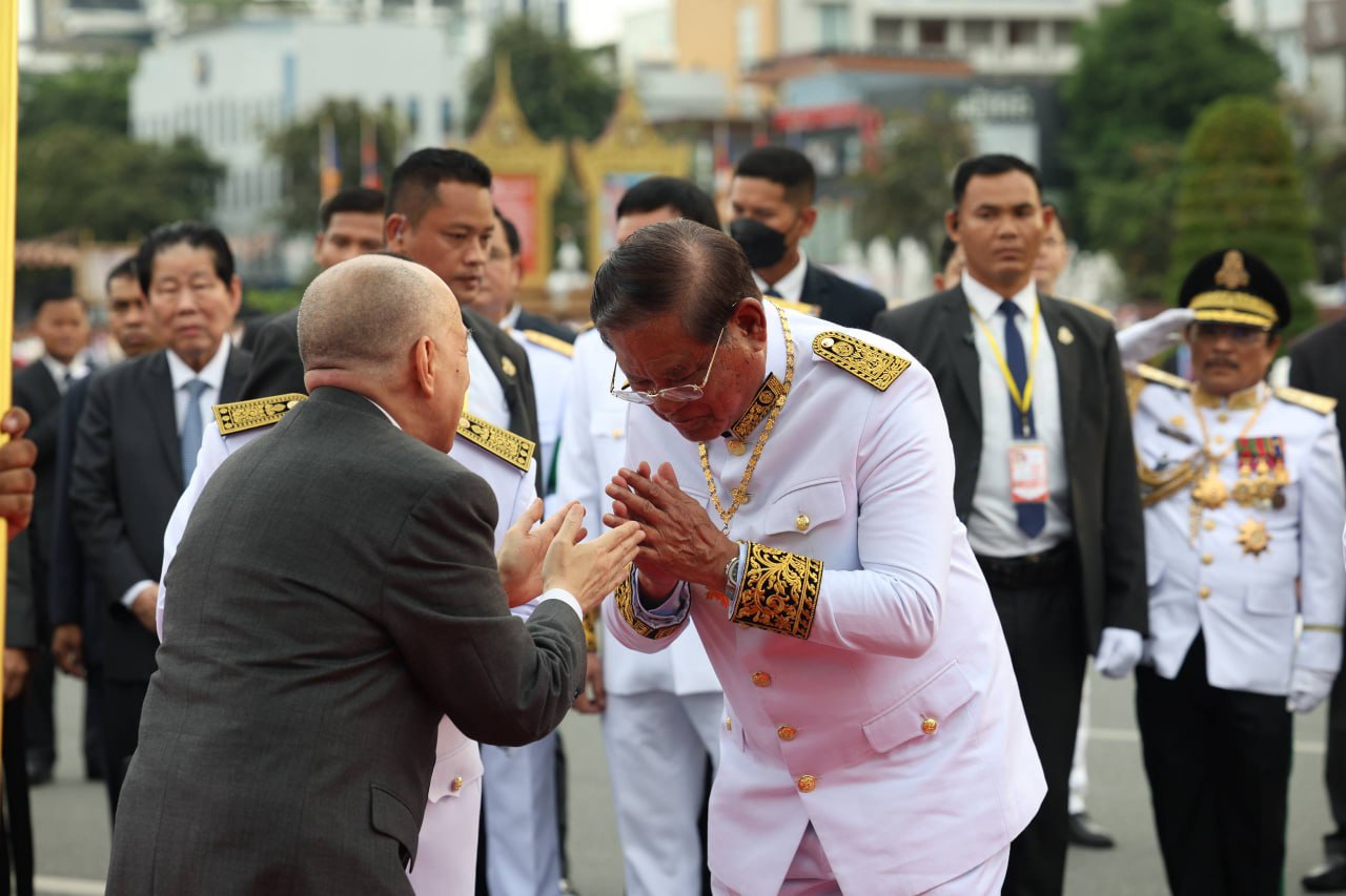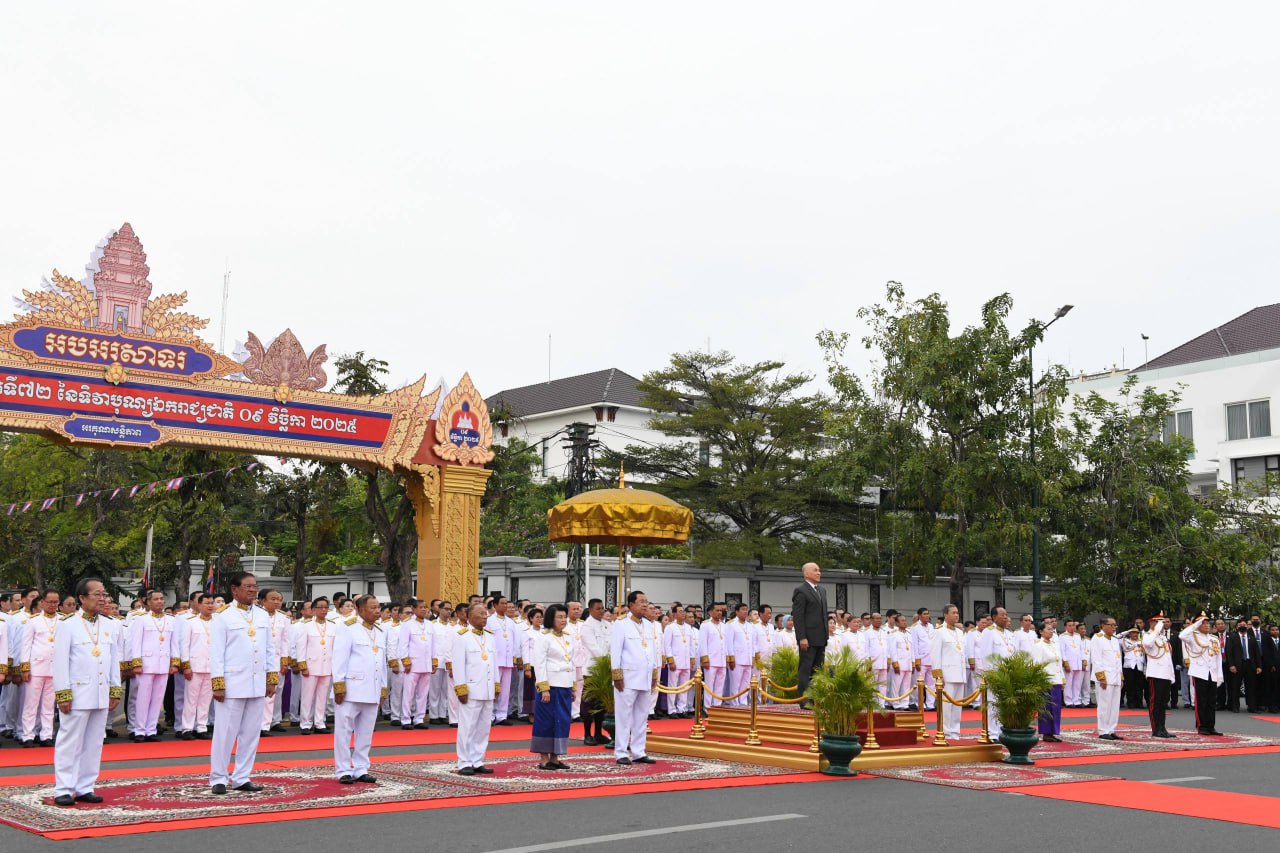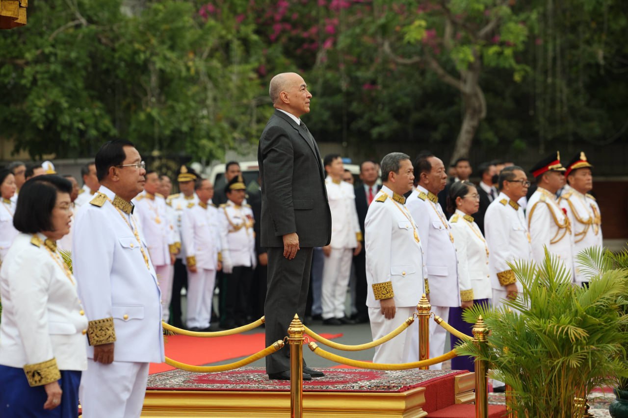 ព្រះករុណា ព្រះបាទសម្តេចព្រះបរមនាថ នរោត្តម សីហមុនី ព្រះមហាក្សត្រ នៃព្រះរាជាណាចក្រកម្ពុជា ស្តេចយាងជាព្រះរាជាធិបតីដ៏ខ្ពង់ខ្ពស់បំផុត ពិធីពន្លត់ភ្លើងជ័យ ក្នុងឱកាសខួបអនុស្សាវរីយ៍លើកទី៧២ នៃទិវាបុណ្យឯករាជ្យជាតិ ៩ វិច្ឆិកា (៩ វិច្ឆិកា ១៩៥៣ – ៩ វិច្ឆិកា ២០២៥) និងទិវាកំណើតនៃកងយោធពលខេមរភូមិន្ទ នារសៀលថ្ងៃទី១១ ខែវិច្ឆិកា ឆ្នាំ២០២៥ នៅរាជធានីភ្នំពេញ ដោយមានការអញ្ជើញចូលរួមពីសំណាក់ថ្នាក់ដឹកនាំព្រឹទ្ធសភា រដ្ឋសភា រាជរដ្ឋាភិបាល អង្គទូតបរទេសប្រចាំនៅកម្ពុជា និងមន្រ្តីរាជការច្រើនរូប។