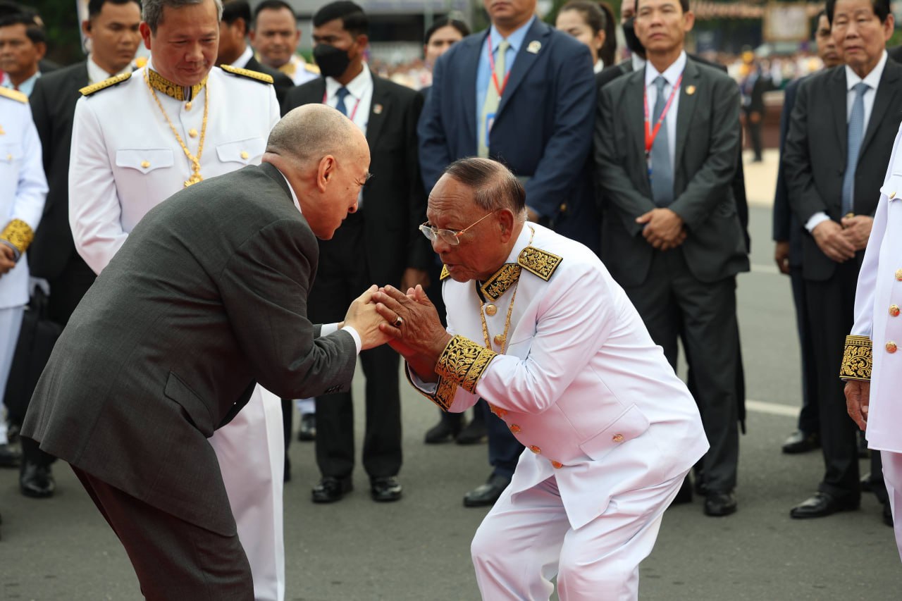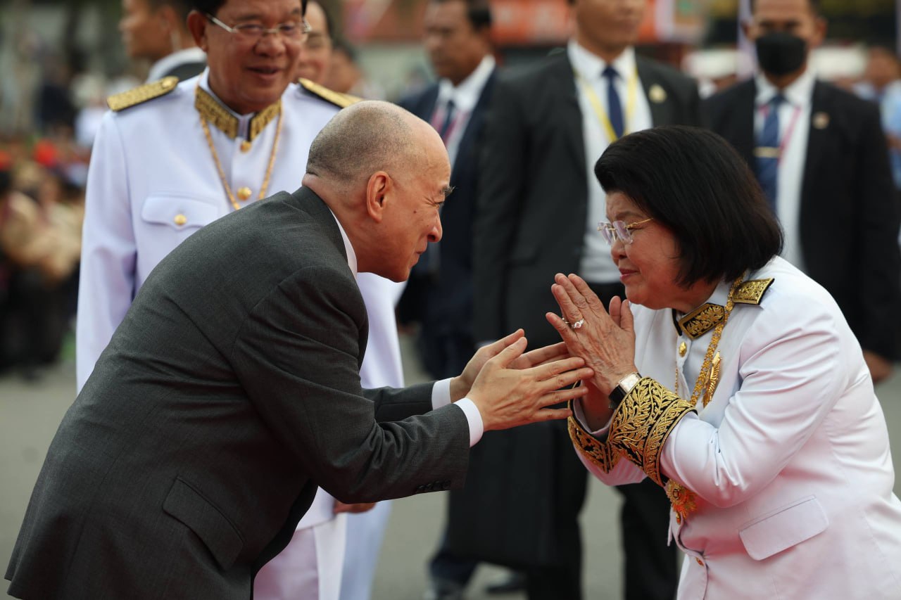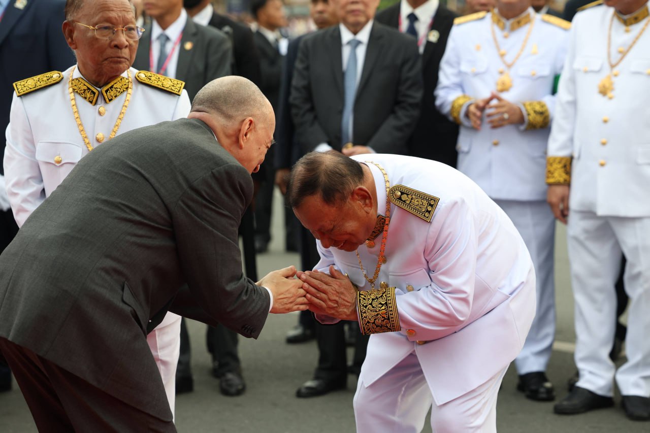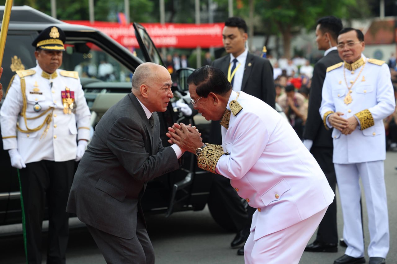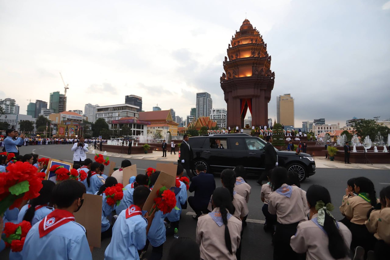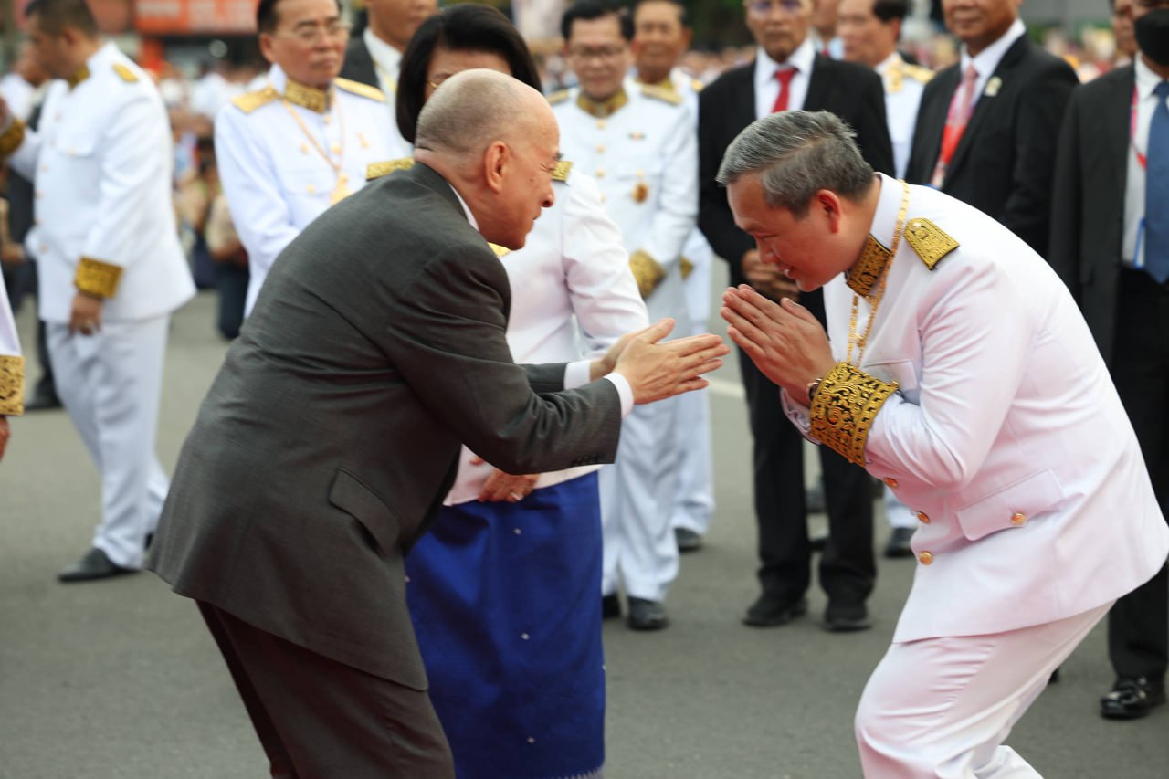ព្រះករុណា ព្រះបាទសម្តេចព្រះបរមនាថ នរោត្តម សីហមុនី ព្រះមហាក្សត្រ នៃព្រះរាជាណាចក្រកម្ពុជា ស្តេចយាងជាព្រះរាជាធិបតីដ៏ខ្ពង់ខ្ពស់បំផុត ពិធីពន្លត់ភ្លើងជ័យ ក្នុងឱកាសខួបអនុស្សាវរីយ៍លើកទី៧២ នៃទិវាបុណ្យឯករាជ្យជាតិ ៩ វិច្ឆិកា (៩ វិច្ឆិកា ១៩៥៣ – ៩ វិច្ឆិកា ២០២៥) និងទិវាកំណើតនៃកងយោធពលខេមរភូមិន្ទ នារសៀលថ្ងៃទី១១ ខែវិច្ឆិកា ឆ្នាំ២០២៥ នៅរាជធានីភ្នំពេញ ដោយមានការអញ្ជើញចូលរួមពីសំណាក់ថ្នាក់ដឹកនាំព្រឹទ្ធសភា រដ្ឋសភា រាជរដ្ឋាភិបាល អង្គទូតបរទេសប្រចាំនៅកម្ពុជា និងមន្រ្តីរាជការច្រើនរូប។