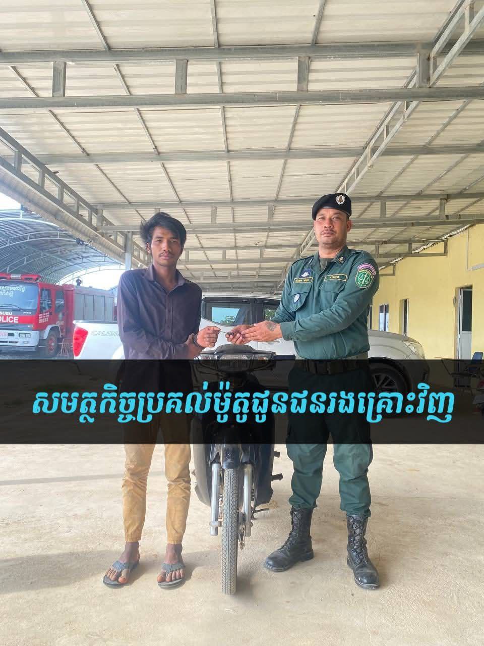 កម្លាំងនគរបាលស្រុកសាមគ្គីមុនីជ័យ បង្រ្កាបករណីប្លន់យកម៉ូតូបានភ្លាមៗ