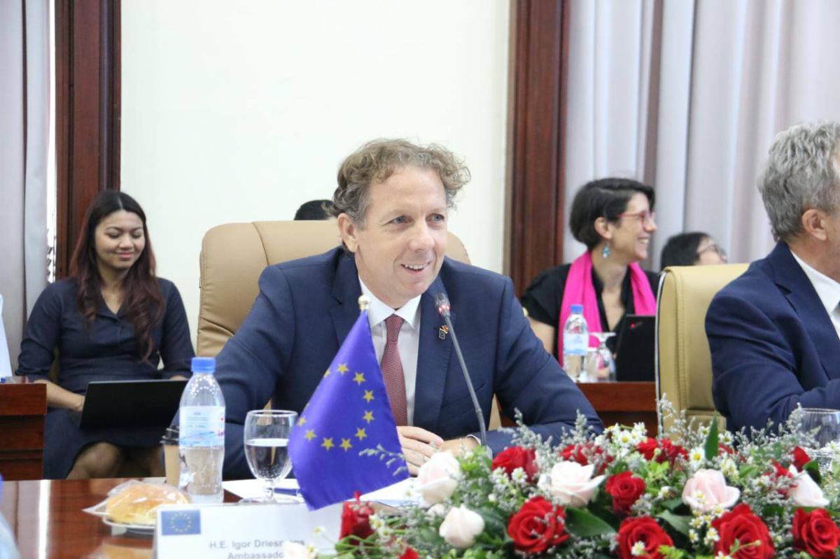 កិច្ចប្រជុំនេះ ប្រារព្ធ ក្រោមអធិបតីភាព ឯកឧត្តម ឈៀង យ៉ាណារ៉ា ទេសរដ្ឋមន្រ្តីទទួលបន្ទុកបេសកកម្មពិសេស អនុប្រធានទី២ នៃក្រុមប្រឹក្សាអភិវឌ្ឍន៍កម្ពុជា (CDC) និងឯកឧត្តម Igor Driesmans ឯកអគ្គរដ្ឋទូតនៃសហភាពអឺរ៉ុប ព្រមទាំងមានការចូលរួមពីអន្តរក្រសួងពាក់ព័ន្ធ ជាមួយនឹងប្រតិភូសហភាពអឺរ៉ុបប្រចាំកម្ពុជា និងបណ្តាប្រទេសជាសមាជិកសហភាពអឺរ៉ុប ជាច្រើនរូប៕