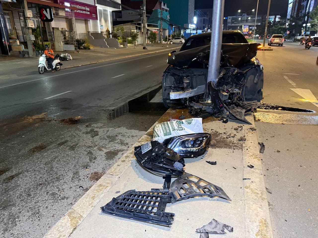 ភ្នំពេញ៖ បុរសម្នាក់បានបើករថយន្តស៊រីទំនើបម៉ាកMAYBACHមួយគ្រឿង ក្នុងល្បឿនលឿនខ្វះការប្រុងប្រយ័ត្នក៏រ៉េចង្កូតជ្រុលទៅបុកខឿនរួចបន្តទៅបុកបង្គោលភ្លើងបំភ្លឺផ្លូវបាកទ្រេតចំនួនមួ៦ដើមចំណែកឯរថយន្តរងការខូចខាតមួយកំណាត់មុខយ៉ាងដំណំ។