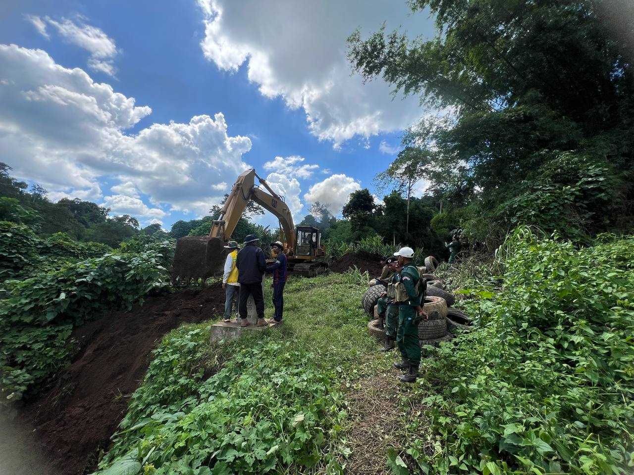 មណ្ឌលគិរី ៖ នៅថ្ងៃទី១២ ខែវិច្ឆិកា ឆ្នាំ២០២៥ កម្លាំងនគរបាលខេត្តមណ្ឌលគិរីតាមបន្ទាត់ព្រំដែន និងទាហានការពារព្រំដែន បានរាយការណ៍មកមន្ទីរសាធារណការ និងដឹកជញ្ជូនខេត្ត អំពីស្ថានភាពដីជិតបង្គោលខណ្ឌសីមា ជាប់មាត់អូរហ៊ុច លេខ៦៩/៣៨ ដែលកើតមានទឹកហូរបាកលដីជើងបង្គោល។