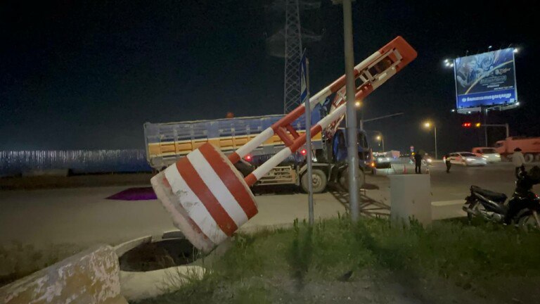 ភ្នំពេញ ៖ រថយន្តប៉ែនដឹកដីបើកចេញពីការដ្ឋានចាក់ដីវិញភ្លេចចុចទ្រុងទម្លាក់ចុះក្រោមវិញធ្វើឲ្យទ្រុងទាក់ប៉ារ៉ាស់កាត់ទទឹងផ្លូវបាក់រលំបារ៉ាស់សង្កត់លើរថយន្តនោះ កាលពីថ្ងៃទី១២ ខែ វិច្ឆិកា ឆ្នាំ ២០២៥ នៅចំណុចច្រកចូលផ្សារទំនើបអ៊ីអន៣ តាមផ្លូវ៦០ម៉ែត្រ ស្ថិតនៅសង្កាត់ ចាក់អង្រែក្រោម ខណ្ឌមានជ័យ រាជធានីភ្នំពេញ ។ រថយន្តបង្កជាប្រភេទរថយន្តបែនដឹកដី ពណ៌ទឹកប៉ិចលាយលឿង ពាក់ស្លាកលេខ កណ្តាល 3A 0855 បើកបរដោយបុរសម្នាក់មិនស្គាល់អត្តសញ្ញាណ ។
