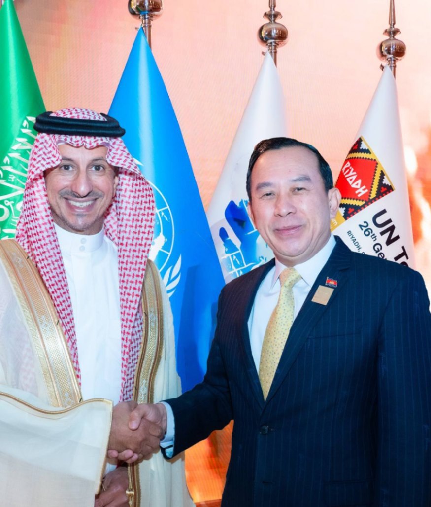 នាឱកាសដឹកនាំគណៈប្រតិភូជាន់ខ្ពស់ក្រសួងទេសចរណ៍ ចូលរួមមហាសន្និបាតលើកទី២៦ នៃអង្គការទេសចរណ៍សហប្រជាជាតិ (UN Tourism- 26th General Assembly) នៅរាជធានីរីយ៉ាដ កាលពីថ្ងៃទី៩ ខែវិច្ឆិកា ឆ្នាំ២០២៥ ឯកឧត្តម ហួត ហាក់ រដ្ឋមន្ត្រីក្រសួងទេសចរណ៍ បានជួបពិភាក្សាការងារកម្រិតខ្ពស់ជាមួយឯកឧត្តម Ahmed Al-Khateeb រដ្ឋមន្រ្តីក្រសួងទេសចរណ៍ នៃព្រះរាជាណាចក្រអារ៉ាប៊ីសាអូឌីតអំពីកិច្ចសហប្រតិបត្តិលើវិស័យទេសចរណ៍រវាងកម្ពុជា និងព្រះរាជាណាចក្រអារ៉ាប៊ីសាអូឌីត។