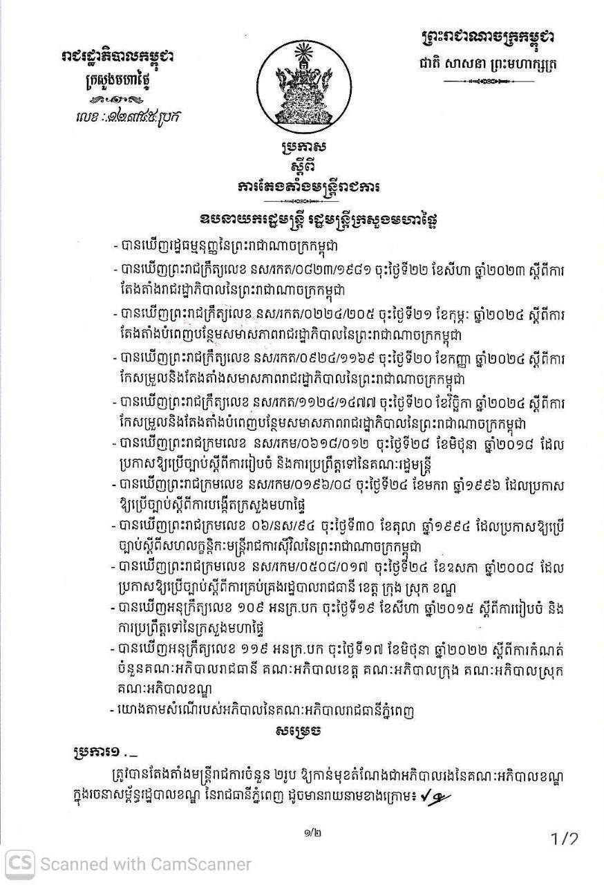 លោក កេត រតនា ត្រូវបានថ្នាក់ដឹកនាំ ប្រកាសតែងតាំងចូលកាន់តំណែងថ្មី ជាអភិបាលរងខណ្ឌជ្រោយចង្វារ ព្រឹកនេះ ក្រោមអធិបតីភាព ឯកឧត្តម ឃួង ស្រេង អភិបាលរាជធានីភ្នំពេញ !!!