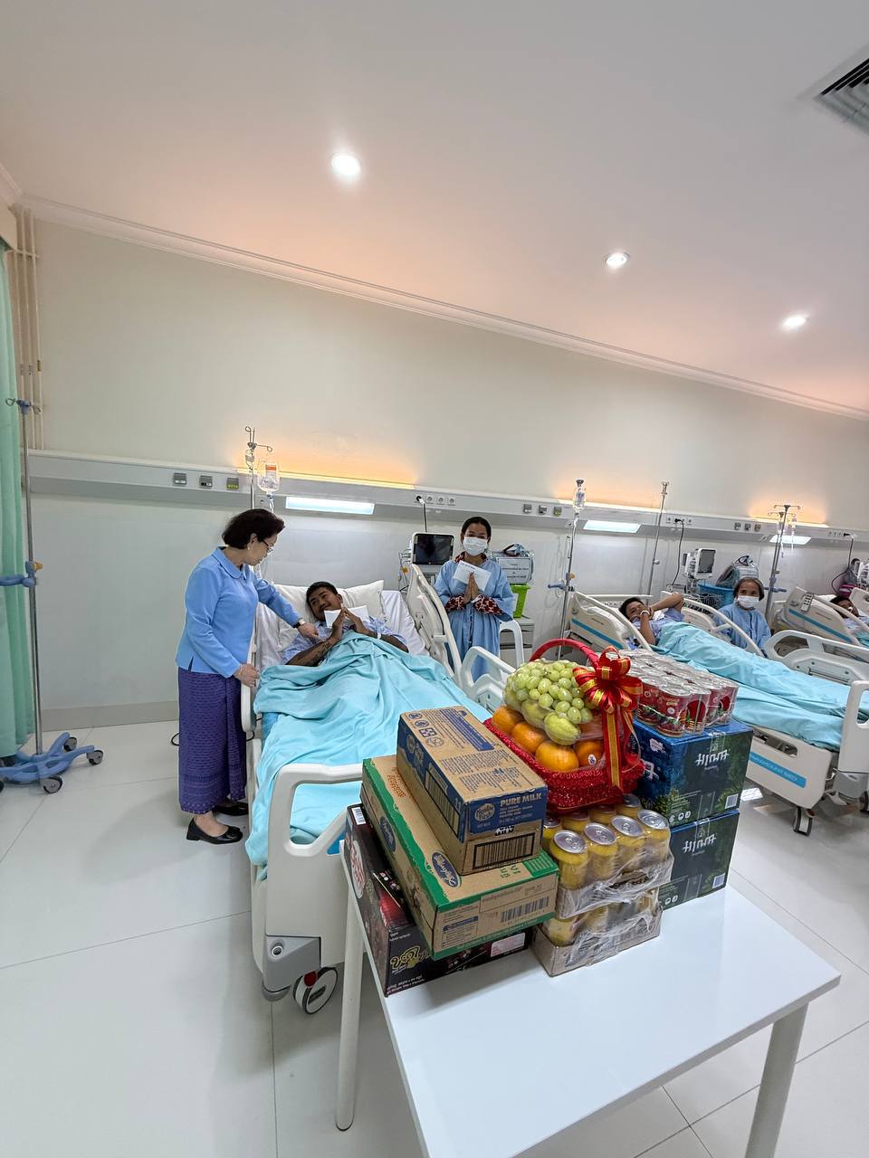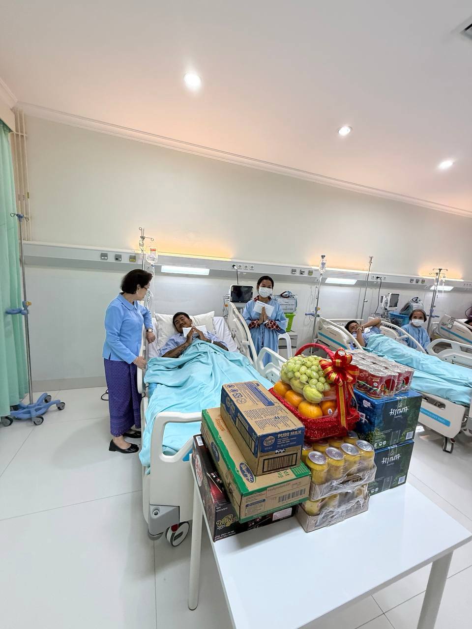 (ភ្នំពេញ)៖ ទឹកចិត្ដដ៏មហាធំធេងគ្មានព្រំដែនរបស់អ្នកម្ដាយមនុស្សធម៌ សម្ដេចកិត្ដិព្រឹទ្ធបណ្ឌិត ប៊ុន រ៉ានី ហ៊ុនសែន ប្រធានកាកបាទក្រហមកម្ពុជា ពិតជាមិនអាចគណនាបាននោះឡើយចំពោះកូនចៅប្រុសស្រីកម្ពុជាគ្រប់ៗរូប ជាក់ស្ដែងនៅរសៀលថ្ងៃទី១៤ ខែវិច្ឆិកា ឆ្នាំ២០២៥នេះ ទោះអ្នកម្ដាយមិនបានអញ្ជើញទៅសួរសុខទុក្ខដោយផ្ទាល់ជាមួយពលរដ្ឋខ្មែរស្លូតត្រង់ ចំនួន៣រូប ដែលបានរងរបួសដោយការបាញ់ប្រហារពីយោធាថៃនៅភូមិព្រៃចាន់ ដែលកំពុងព្យាបាលយ៉ាងចិត្ដទុកដាក់ពីក្រុមគ្រូពេទ្យនៅមន្ទីរពេទ្យកាល់ម៉ែតក៏ដោយ ក៏អ្នកម្ដាយដ៏មហាសប្បុរស បានចាត់លោកស្រីបណ្ឌិត អ៊ុក ម៉ាលី សមាជិកាព្រឹទ្ធសភាមណ្ឌលភូមិភាគ២ ចុះសួរសុខទុក្ខ និងនាំយកថវិកា និងគ្រឿងឧបភោគ-បរិភោគមួយចំនួនធំ ជូនដល់ពលរដ្ឋខាងលើនេះផងដែរ។
