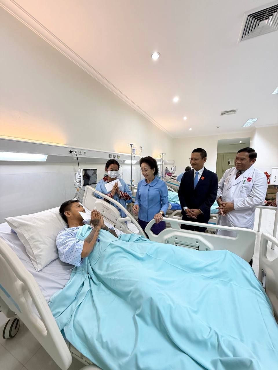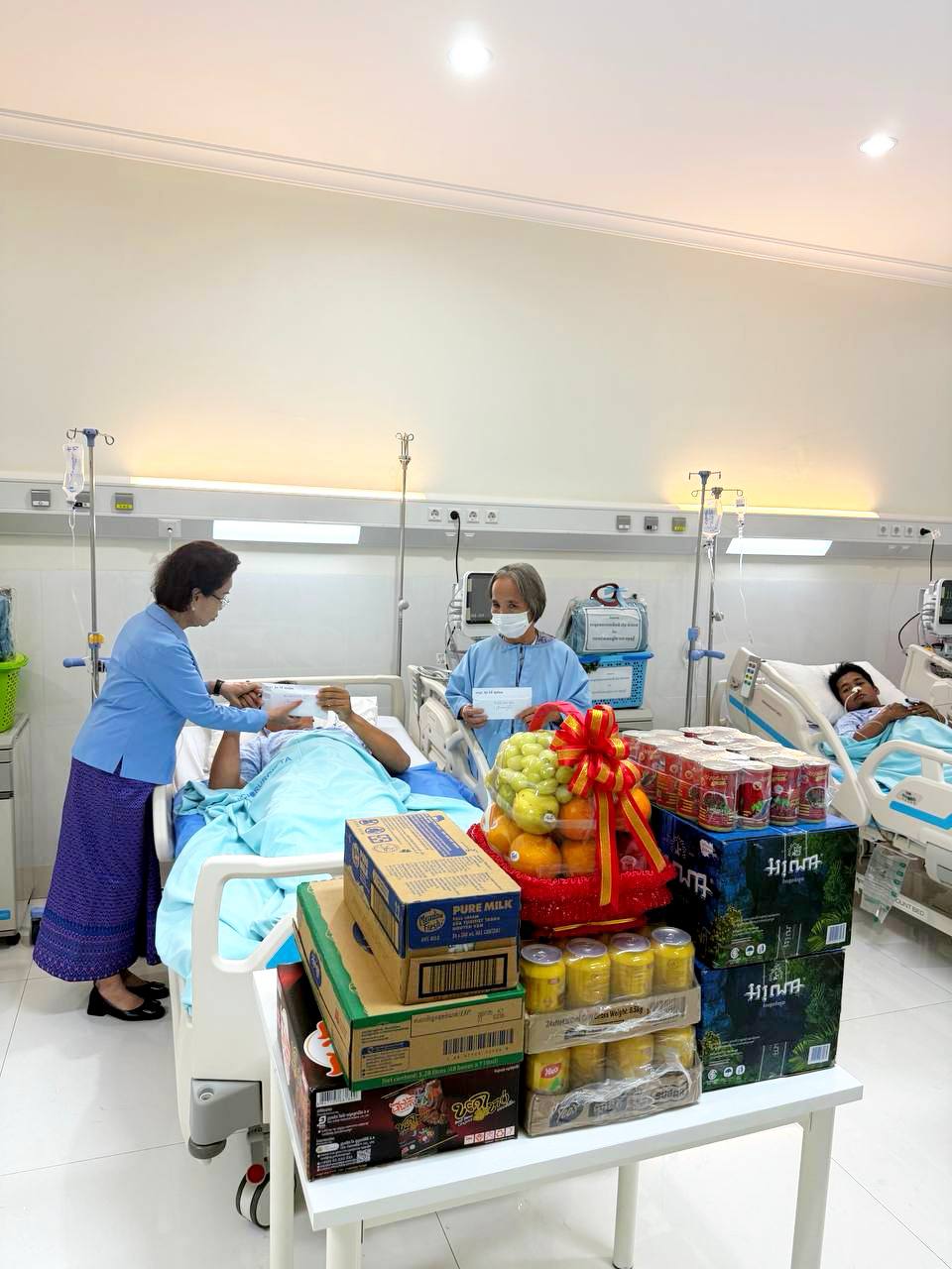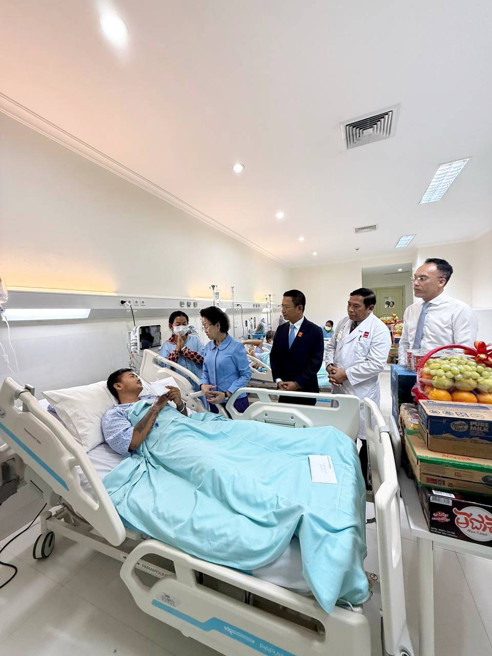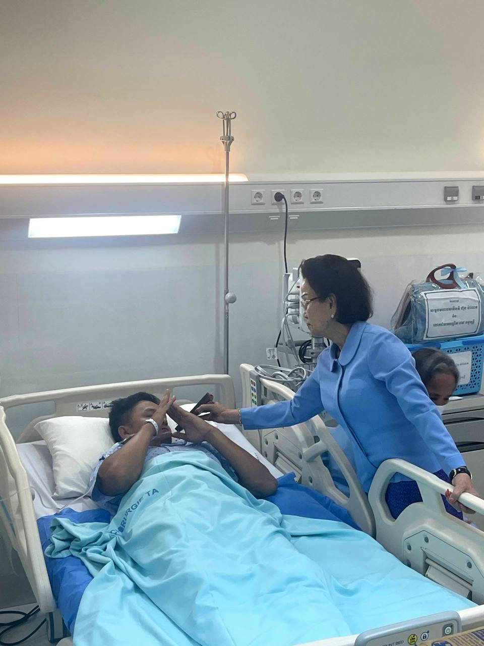 សម្ដេចកិត្ដិព្រឹទ្ធបណ្ឌិត ប៊ុន រ៉ានី ហ៊ុនសែន ជួបសំណេះសំណាលតាមទូរស័ព្ទ និងចាត់តំណាងចុះសួរសុខទុក្ខ និងនាំយកថវិកា សម្ភារៈមួយចំនួន ជូនពលរដ្ឋរងគ្រោះដោយទាហានថៃបាញ់ប្រហារ នៅភូមិព្រៃចាន់ ដែលកំពុងព្យបាលនៅមន្ទីរពេទ្យកាល់ម៉ែត