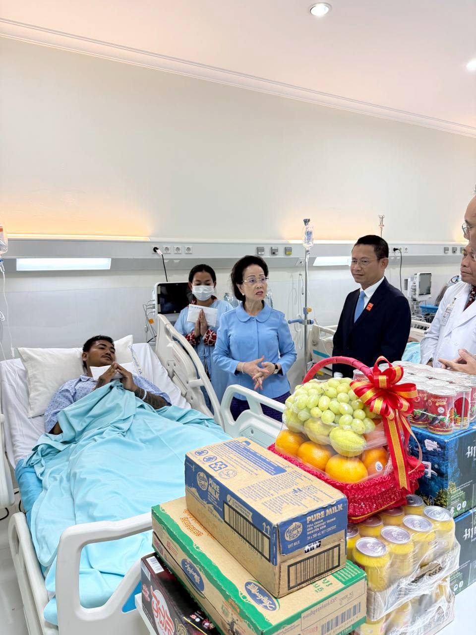 តាមរយៈលោកជំទាវបណ្ឌិត អ៊ុក ម៉ាលី, អ្នកម្ដាយមនុស្សធម៌ បានជួបសំណេះសំណាលសួរសុខទុក្ខដោយផ្ទាល់តាមទូរស័ព្ទ ជាមួយពលរដ្ឋរងគ្រោះទាំង៣រូប, ដោយអ្នកម្ដាយដ៏កក់ក្ដៅ បានសួរនាំពីសុខភាព ស្ថានភាពគ្រួសារ និងជូនពរដល់ប្រជាពលរដ្ឋដ៏ស្លូតត្រង់ ដ៏គួរអាសូរទាំង៣រូបនេះ ឱ្យឆាប់ជាសះស្បើយ ពិសេសបានលើកទឹកចិត្ដដល់ពលរដ្ឋដែលរងគ្រោះនេះ សូមសម្រាកព្យាបាលឱ្យបានប្រសើរឡើងវិញ ដោយកុំមានការព្រួយអ្វីទាំងអស់ទៅការព្យាបាល សូមទុកចិត្ដលើក្រុមគ្រូពេទ្យយើងដែលកំពុងបម្រើសេវាសុខាភិបាលជូនយ៉ាងចិត្ដទុកដាក់បំផុត។