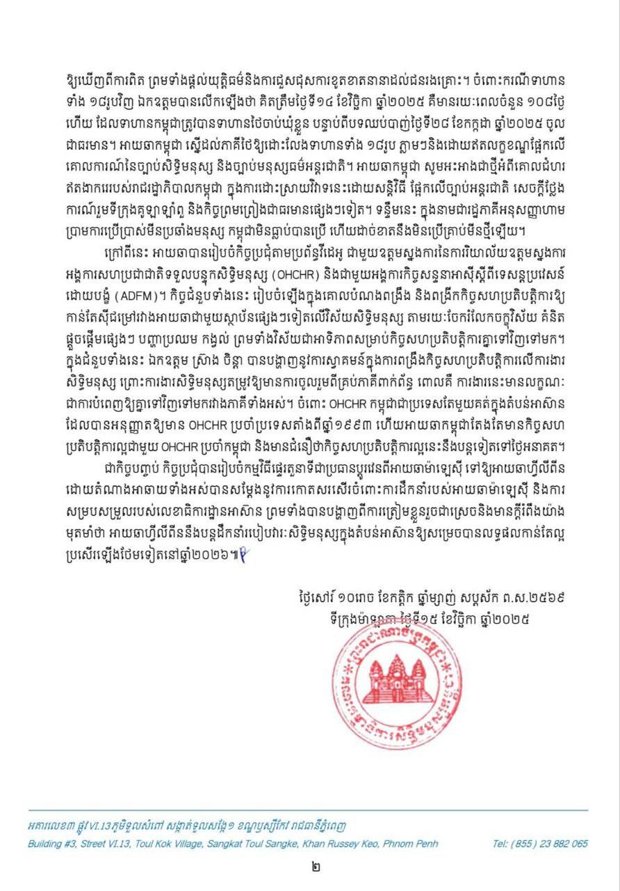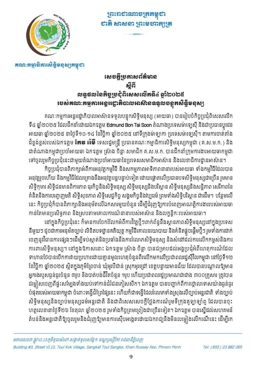 សេចក្តីប្រកាសព័ត៌មាន លទ្ធផលនៃកិច្ចប្រជុំពិសេសលេីកទី៤ ឆ្នាំ២០២៥ របស់គណៈកម្មការអន្តររដ្ឋាភិបាលអាស៊ានទទួលបន្ទុកសិទ្ធិមនុស្ស នៅទីក្រុងម៉ាឡាកា ប្រទេសម៉ាឡេស៊ី ៕