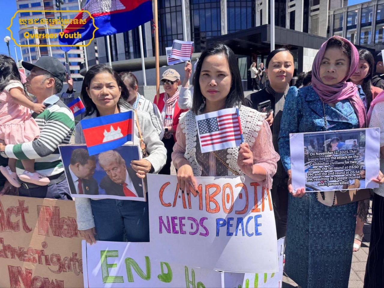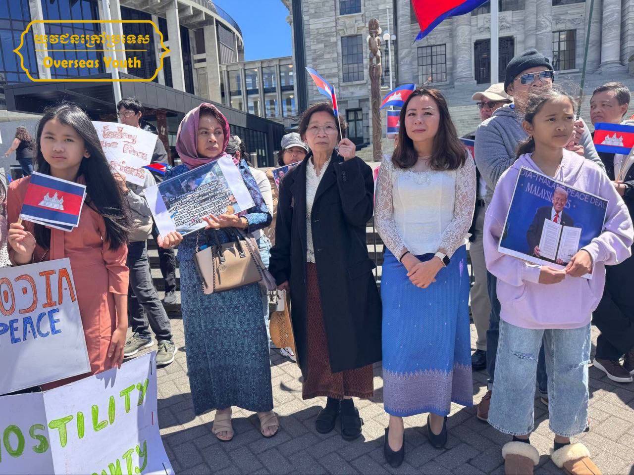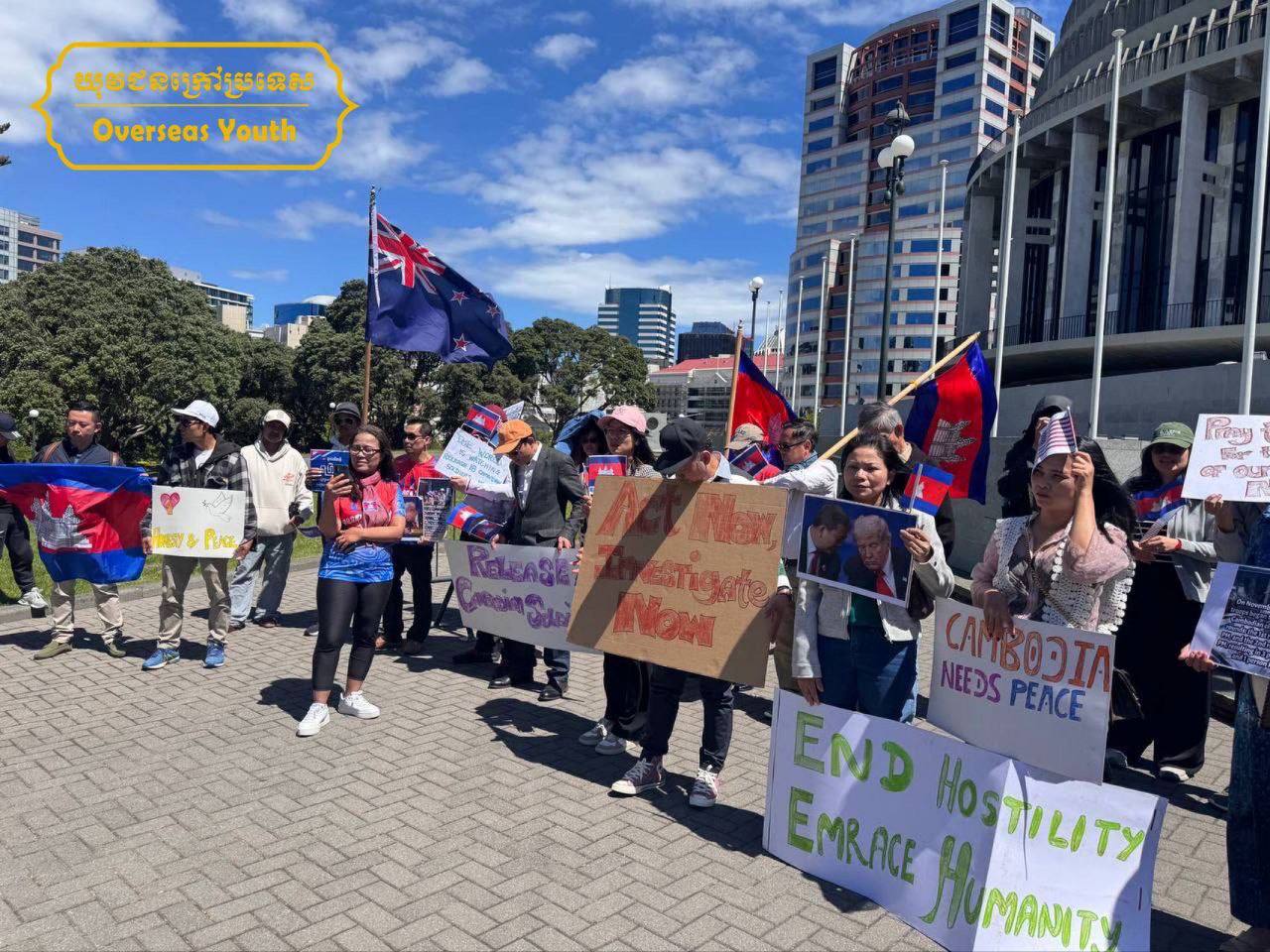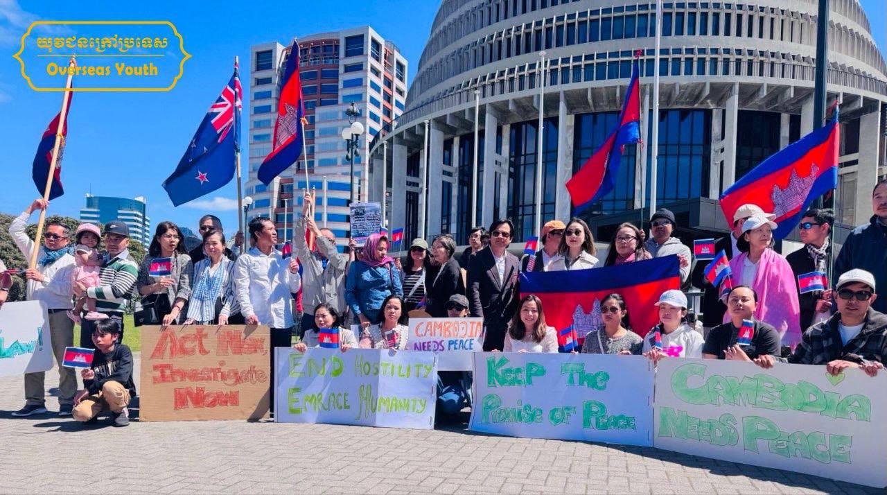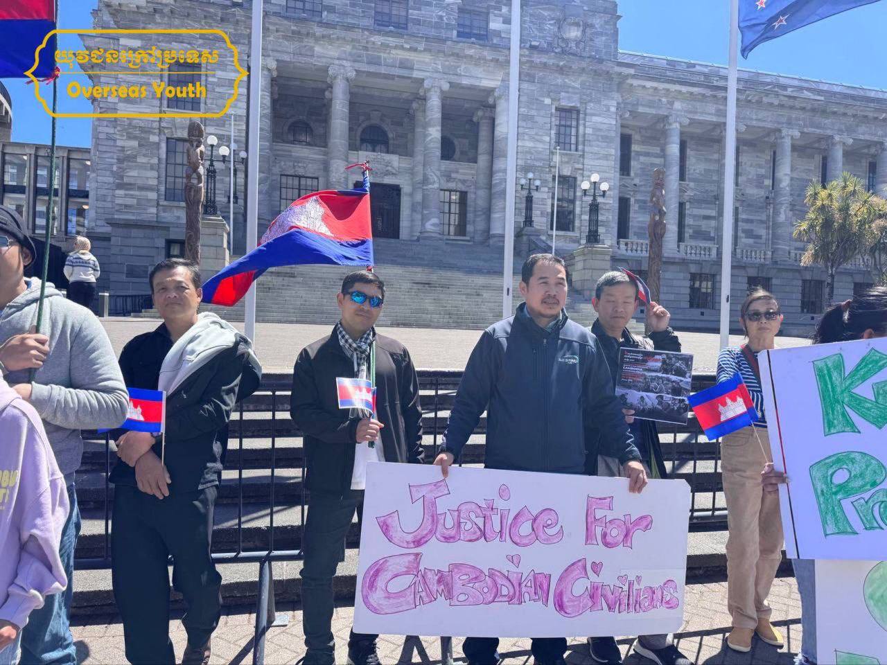 (រដ្ឋធានីវ៉ែល្លីងតុន ប្រទេសនូវ៉ែលហ្សេឡង់) រសៀលថ្ងៃអាទិត្យ ទី១៦ ខែវិច្ឆិកា ឆ្នាំ២០២៥ ប្រជាពលរដ្ឋខ្មែររស់នៅក្នុងរដ្ឋធានីវ៉ែល្លីងតុន ទីក្រុងក្រៃឈើច ទីក្រុងផាមើស្តុនណតស៍ ប្រទេសនូវ៉ែលហ្សេឡង់ ប្រមាណជាង ២០០នាក់ បានជួបជុំគ្នានៅមុខរដ្ឋសភារដ្ឋធានីវ៉ែល្លីងតុន ប្រទេសនូវ៉ែលហ្សេឡង់ ដើម្បីប្រកាសថ្កោលទោសយ៉ាងដាច់អហង្ការ ចំពោះទង្វើបាញ់ប្រហារបង្កដោយភាគីថៃ មកលើពលរដ្ឋខ្មែរ នៅភូមិព្រៃចាន់ ឃុំអូរបីជាន់ ស្រុកអូរជ្រៅ ខេត្តបន្ទាយមានជ័យ បណ្ដាលឱ្យពលរដ្ឋខ្មែរម្នាក់ស្លាប់បាត់បង់ជីវិត និង៣នាក់រងរបួស និងដើម្បី៖