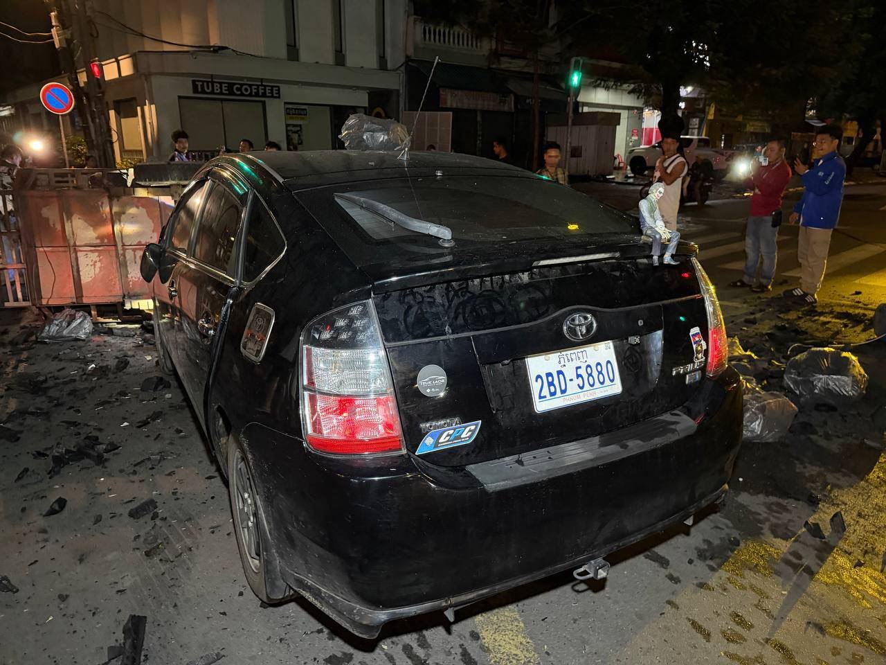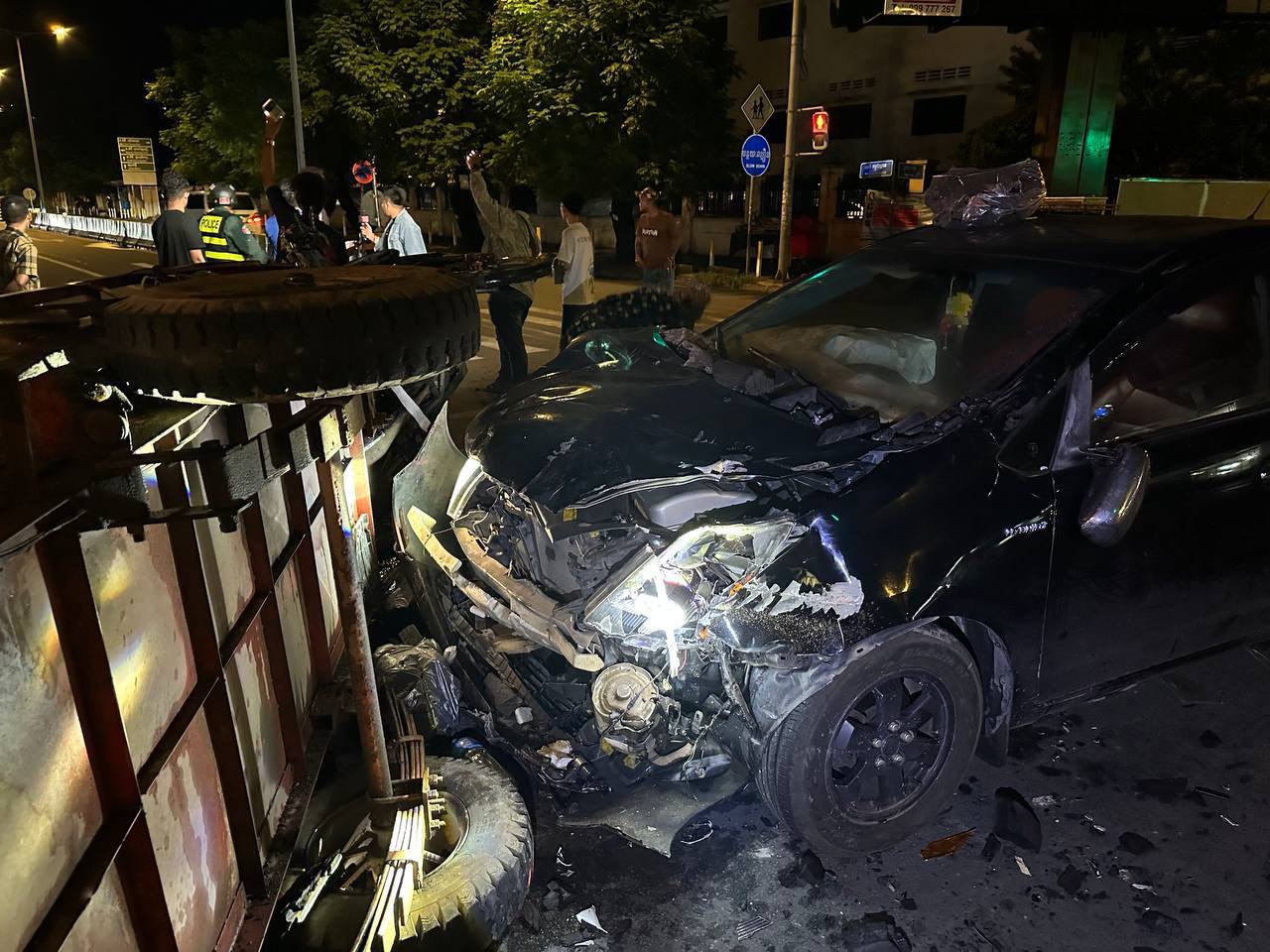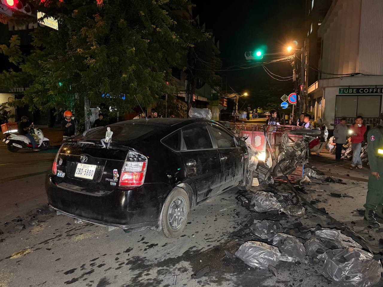 នៅមុនពេលកើតហេតុគេឃើញម៉ូតូសណ្ដោងរុឺម៉កដឹកធ្យូងមួយគ្រឿងគ្មានស្លាកលេខបើកបរដោយបុរសម្នាក់ធ្វើដំណើរតាមបណ្ដោយផ្លូវកម្ពុជាក្រោមទិសដៅពីលិចទៅកើតឆ្លងស្តុបផ្លូវបំបែកជាបួនក្នុងល្បឿនមធ្យម ខណៈពេលបើកឆ្លងដល់ពាក់កណ្ដាលផ្លូវ ស្រាប់តែគេឃើញមានរថយន្តបង្កម៉ាក toyota Prius មួយគ្រឿងពណ៌ខ្មៅពាក់ស្លាកលេខ ភ្នំពេញ 2BD-5880 បើកបរដោយបុរសម្នាក់ធ្វើដំណើរចេញពីផ្លូវ២៥៣ទិសដៅពីលិចទៅកើតឆ្លងស្តុបផ្លូវបំបែកជាបួនដូចគ្នាក្នុងល្បឿនលឿនមិនបង្អង់ក៏ជ្រុលទៅបុកម៉ូតូសណ្ដោងរុឺម៉កដឹកធ្យូងយ៉ាងពេញទំហឹងប៉ើងក្រឡាប់ផ្ងារជើងរងការខូចខាតធ្ងន់ធ្ងរសំណាងល្អមិនបង្កឲ្យមានគ្រោះថ្នាក់ទៅដល់មនុស្សហើយភ្លាមនោះភាគីទាំងសងខាងមិនបានរត់ទៅណានោះទេនៅកន្លែងកើតហេតុ។