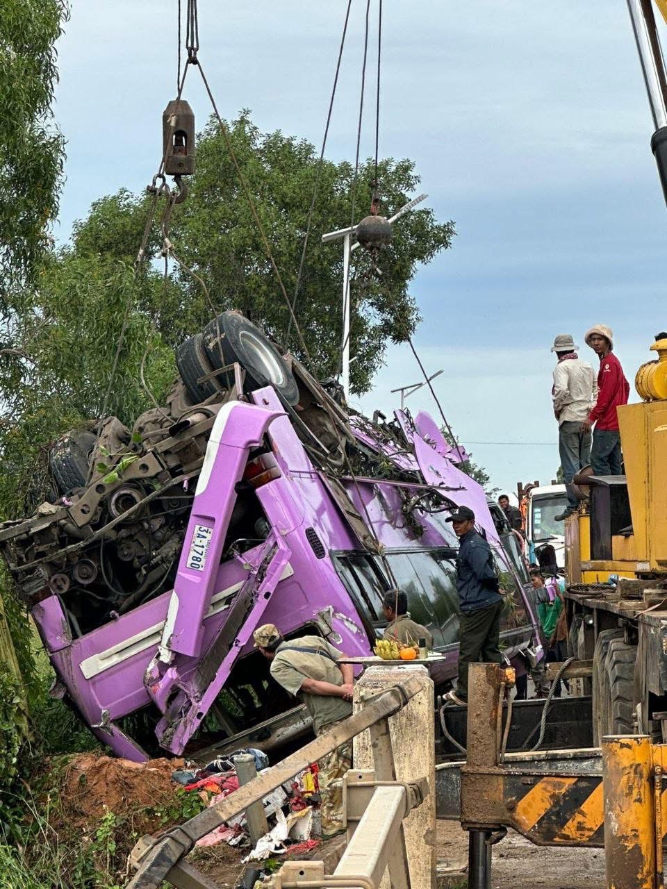 ករណីរថយន្តក្រុងប្រភេទ ២ ជាន់ បានបើកបុកបង្កាន់ដៃស្ពានធ្លាក់ទឹក នៅចំណុចស្រុកសន្ទុក ខេត្តកំពង់ធំ នៅវេលាម៉ោង ៣ ទៀបភ្លឺ ថ្ងៃទី ២០ ខែវិច្ឆិកា ឆ្នាំ ២០២៥ នេះ បើតាមការអាប់ដែតព័ត៌មានថ្មីដែលទើបទទួលបាន បានបង្ហាញឱ្យឃើញថា មានជនរងគ្រោះ ១៣ នាក់បានបាត់បង់ជីវិត និង របួស ២៤ នាក់។
