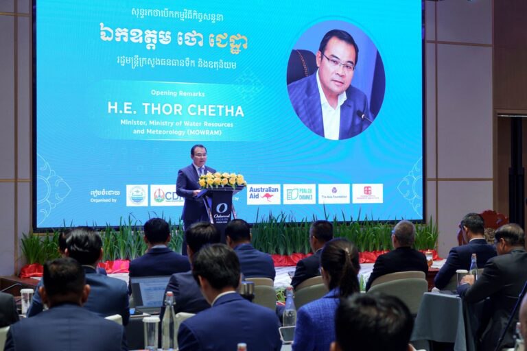 ភ្នំពេញ÷ នាថ្ងៃព្រហស្បតិ៍ ១៥រោច ខែកត្តិក ឆ្នាំម្សាញ់ សប្តស័ក ពុទ្ធសករាជ ២៥៦៩ ត្រូវនឹងថ្ងៃទី២០ ខែវិច្ឆិកា ឆ្នាំ២០២៥ នេះ ឯកឧត្តម ថោ ជេដ្ឋា រដ្ឋមន្ត្រីក្រសួងធនធានទឹក និងឧតុនិយម ប្រធានគណៈកម្មាធិការជាតិទន្លេមេគង្គកម្ពុជា និងជាប្រធានអាជ្ញាធរទន្លេសាប បានអញ្ជើញជាអធិបតីភាពដ៏ខ្ពង់ខ្ពស់បើកកិច្ចសន្ទនាគោលនយោបាយកម្រិតខ្ពស់ស្តីពីអភិបាលកិច្ចទឹកនៅព្រះរាជាណាចក្រកម្ពុជា ដែលរៀបចំដោយវិទ្យាស្ថានបណ្តុះបណ្តាល និងស្រាវជ្រាវដើម្បីអភិវឌ្ឍន៍កម្ពុជា(វបសអ-CDRI) ក្រោមការគាំទ្រថវិកាពីក្រសួងការបរទេសនិងពាណិជ្ជកម្មអូស្ត្រាលី នៅសាលប្រជុំនៃសណ្ឋាគារអ៊ូកវូដព្រីមៀរភ្នំពេញ។