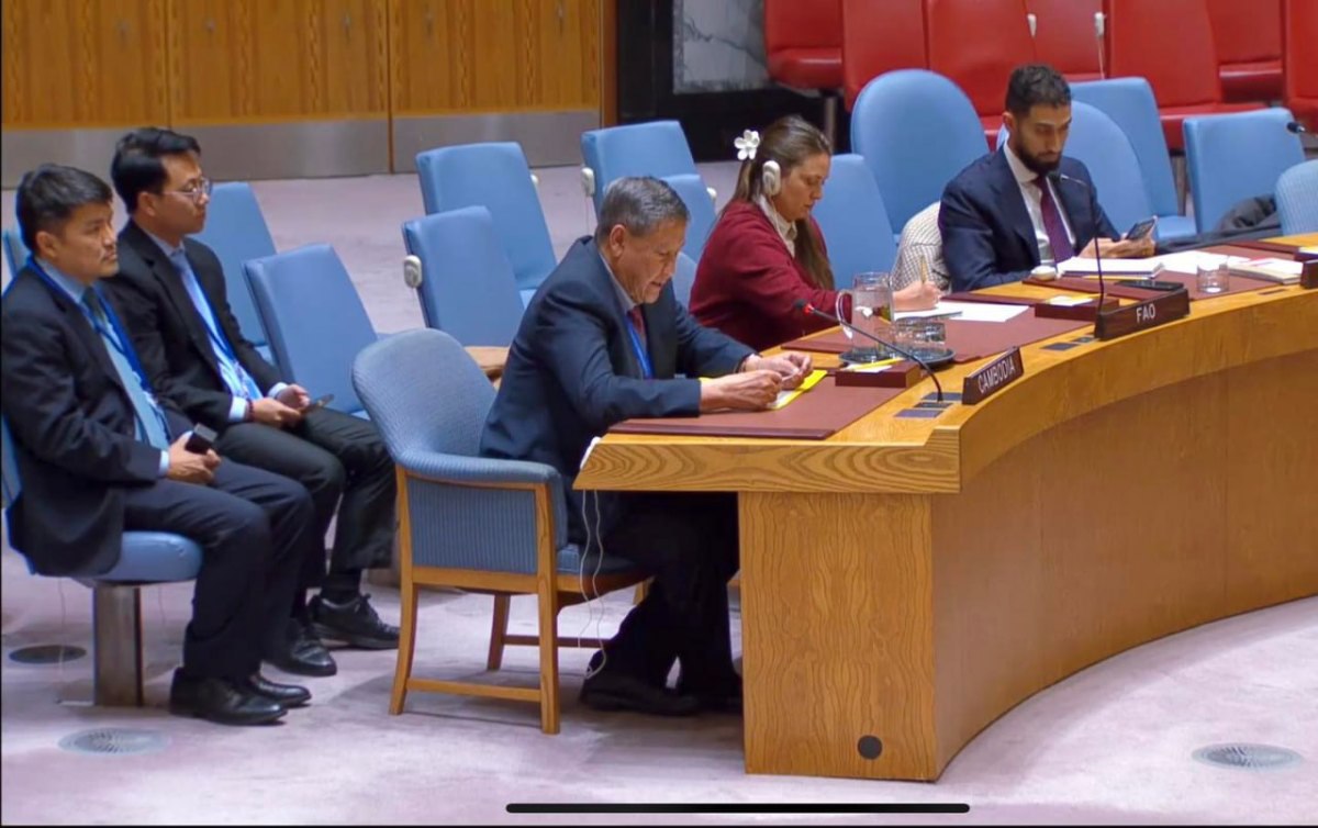 នៅថ្ងៃទី១៨ ខែវិច្ឆិកា ឆ្នាំ២០២៥ ឯកឧត្តម កែវ ឈា ឯកអគ្គរាជទូត តំណាងអចិន្ត្រៃយ៍កម្ពុជា ប្រចាំអង្គការសហប្រជាជាតិ (អ.ស.ប.) បានចូលរួមថ្លែងការណ៍នៅក្នុងកិច្ចប្រជុំបើកចំហររបស់ក្រុមប្រឹក្សាសន្តិសុខអ.ស.ប. ក្រោមប្រធានបទ “ការបង្កើតកិច្ចសន្ទនាសកល៖ ការដោះស្រាយបញ្ហាអសន្តិសុខស្បៀងដែលជាកត្តាជំរុញឱ្យមានជម្លោះ និងការធានាសន្តិសុខស្បៀង” ដែលបានរៀបចំដោយសាធារណរដ្ឋសៀរ៉ាឡេអូន ក្នុងនាមជាប្រធានប្តូរវេននៃក្រុមប្រឹក្សាសន្តិសុខអ.ស.ប.សម្រាប់ខែវិច្ឆិកា ឆ្នាំ២០២៥ នៅទីស្នាក់ការអ.ស.ប. នាទីក្រុងញូវយ៉ក។