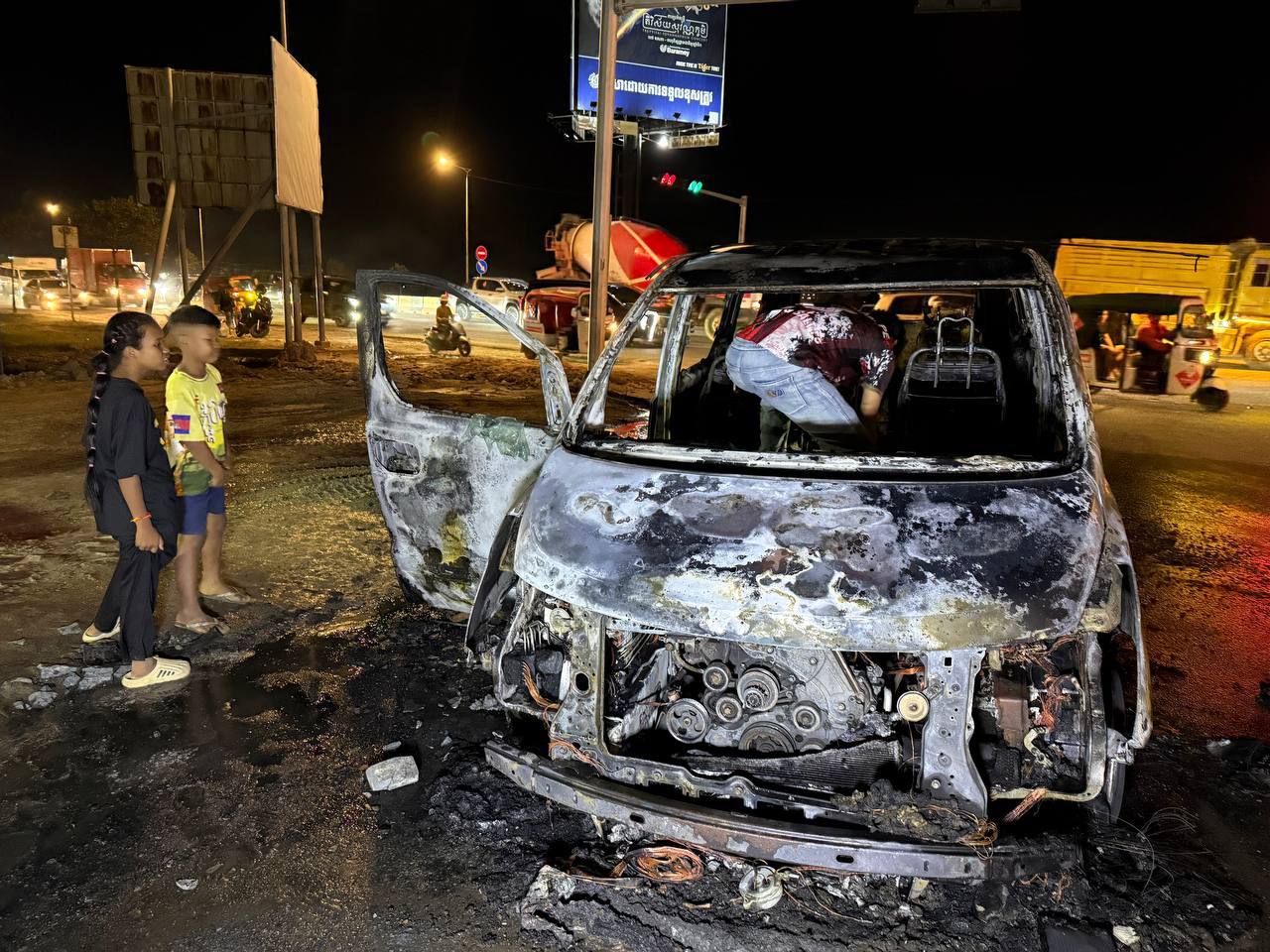 រថយន្តមួយគ្រឿង សង្ស័យឆ្លងចរន្តអគ្គិសនី បណ្តាលឲ្យឆាបឆេះចេញពីកង់ខាងក្រោម រួចបន្តឆេះរាលដាលយ៉ាងសន្ធោសន្ធៅ ផ្អើលដល់សមត្ថកិច្ច