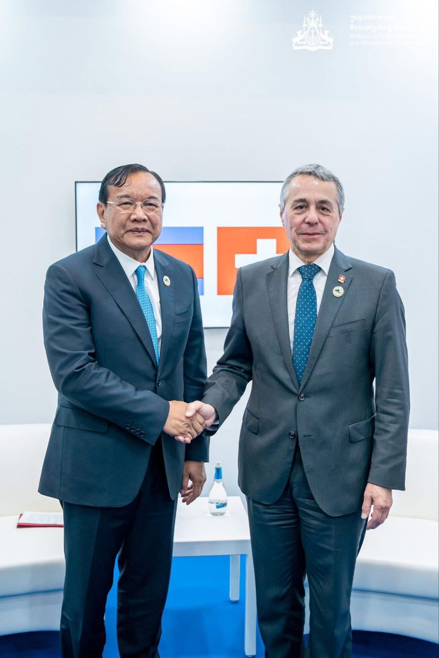 កាលពីរសៀលថ្ងៃទី២០ ខែវិច្ឆិកា ឆ្នាំ២០២៥ ឯកឧត្តមឧបនាយករដ្ឋមន្ត្រី ប្រាក់ សុខុន រដ្ឋមន្ត្រីការបរទេស និងសហប្រតិបត្តិការអន្តរជាតិ បានអញ្ជើញជួបពិភាក្សាទ្វេភាគីជាមួយ ឯកឧត្តម Ignazio Cassis រដ្ឋមន្ត្រីការបរទេសនៃសហព័ន្ធស្វ៊ីស នៅទីក្រុងគីហ្គាលី ប្រទេសររ៉ាន់ដា។