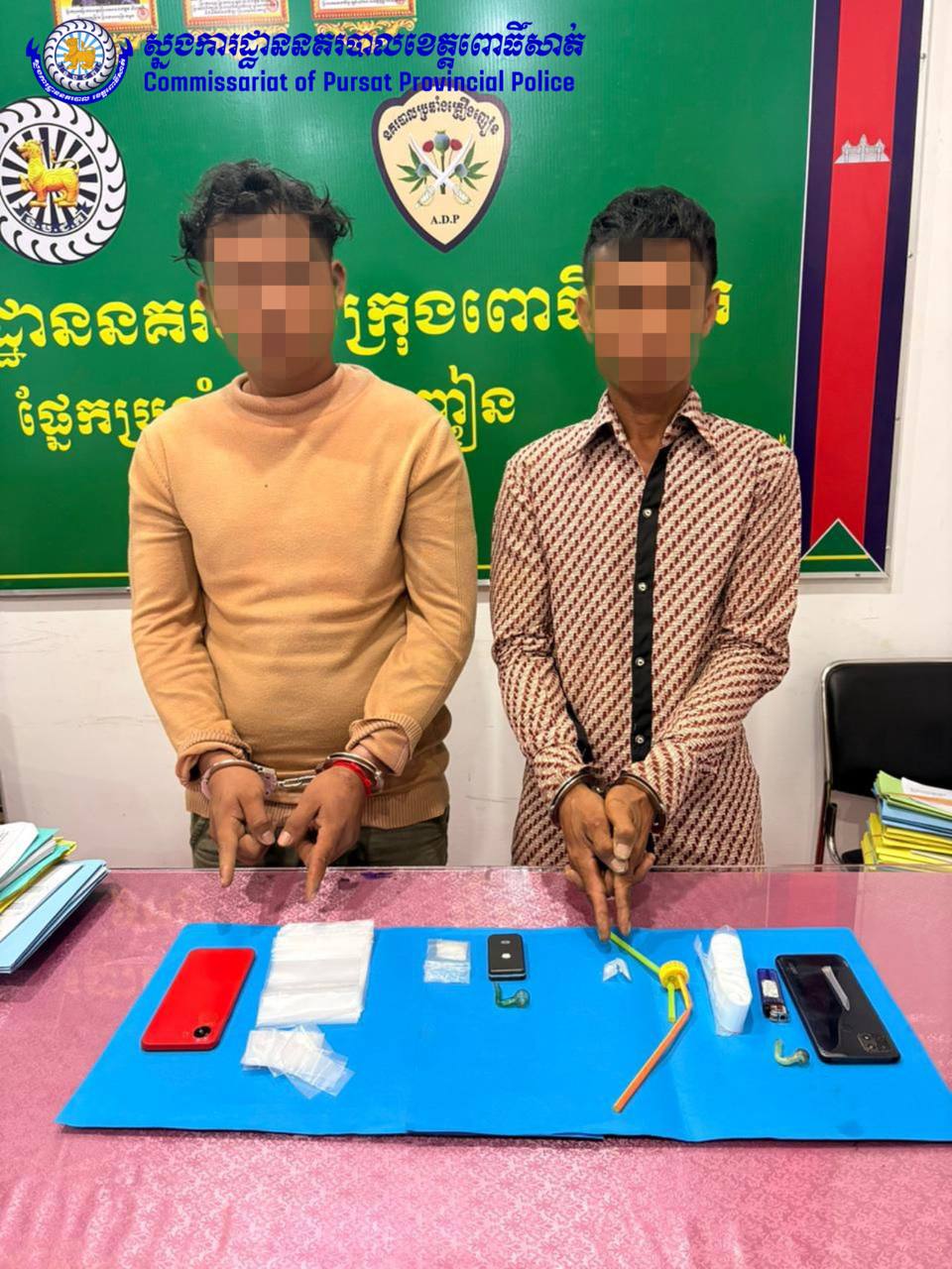 ពោធិ៍សាត់៖ ថ្ងៃទី១៨ ខែវិច្ឆិកា ឆ្នាំ២០២៥ ដោយអនុវត្តតាមការដឹកនាំបញ្ជាដ៏ខ្ពង់ខ្ពស់របស់លោក ឧត្តមសេនីយ៍ទោ ស ថេង ស្នងការនគរបាលខេត្តពោធិ៍សាត់ កម្លាំងប៉ុស្តិ៍លលកស សហការជាមួយកម្លាំងជំនាញផ្នែកប្រឆាំងគ្រឿងញៀន នៃអធិការដ្ឋាននគរបាលក្រុងពោធិ៍សាត់ ដឹកនាំដោយលោកវរសេនីយ៍ឯក កែវ សារិ អធិការនគរបាលក្រុងពោធិ៍សាត់ បានចុះបង្ក្រាបមុខសញ្ញារក្សាទុក ជួញដូរ និងប្រើប្រាស់ដោយខុសច្បាប់នូវសារធាតុញៀន នៅចំណុចលើផ្លូវមួយកន្លែង ស្ថិតនៅភូមិវត្តហ្លួង សង្កាត់លលកស ក្រុងពោធិ៍សាត់ ខេត្តពោធិ៍សាត់ បានធ្វើការឃាត់ខ្លួន និងឆែកឆេរជនសង្ស័យ ០៤នាក់រួមមាន ៖ ១ ឈ្មោះ ឃ ស ហៅ វ ភេទប្រុស អាយុ២៥ ឆ្នាំរស់នៅភូមិក្រពែងស្វាយ ឃុំស្នាមព្រះ ស្រុកបាកាន ។ ២ ឈ្មោះ រ សរ ភេទប្រុស អាយុ២៣ឆ្នាំរស់នៅភូមិដង្គៀបក្ដាម ឃុំស្នាមព្រះ ស្រុកបាកាន ។ ៣ ឈ្មោះ ស សណ ហៅ ស ភេទប្រុស អាយុ៣១ឆ្នាំដែលមកស្នាក់នៅភូមិក្រពើរោទិ៍ ឃុំស្នាមព្រះ ស្រុកបាកាន ។៤ ឈ្មោះ វ វ ភេទប្រុស អាយុ៤៣ឆ្នាំរស់នៅភូមិក្រពើរោទិ៍ ឃុំស្នាមព្រះ ស្រុកបាកាន ។